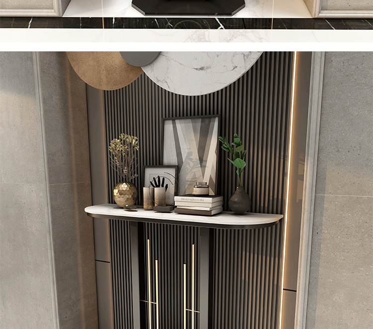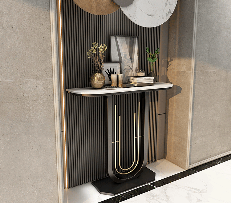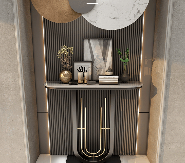 意式の軽豪華な岩板の玄関台の半円の玄関の戸棚の現代の簡単な壁に寄りかかって家に入る岩板の玄関のテーブルの端の景台に入ります。