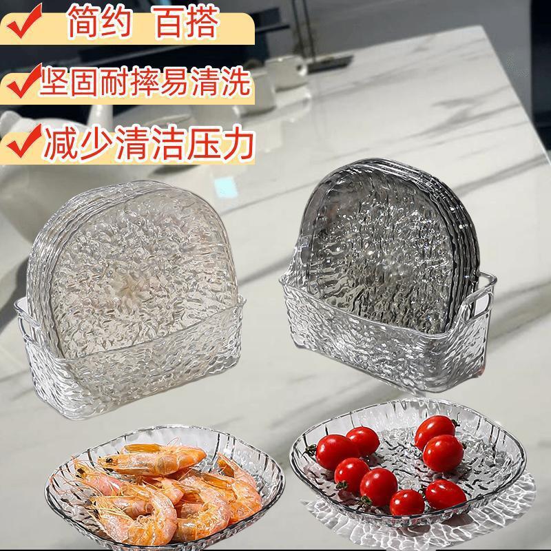 轻奢简约套装碟子家用吐骨碟餐桌垃圾盘网红透明桌面冰川纹吐骨碟