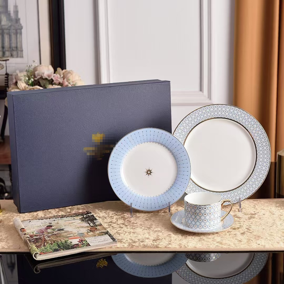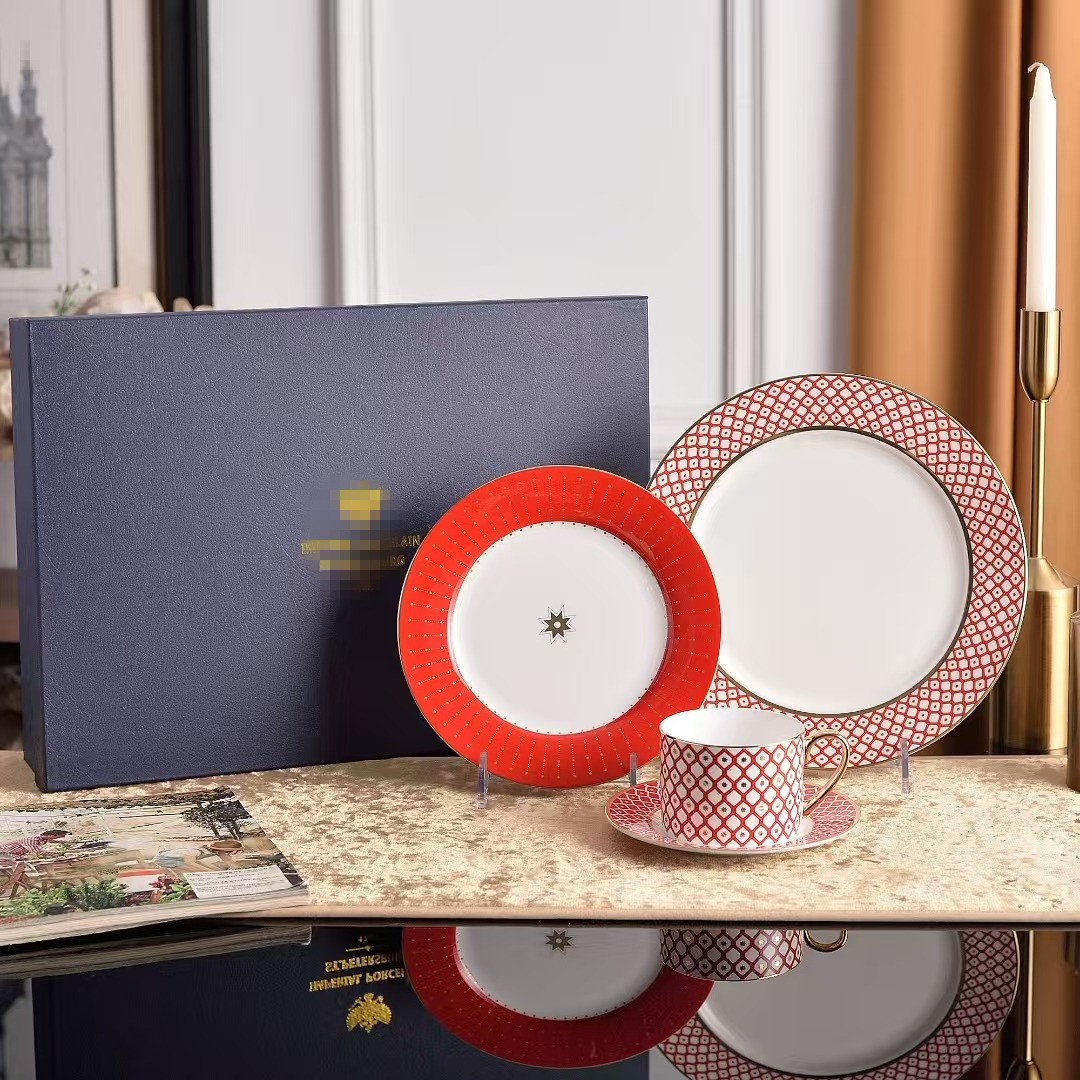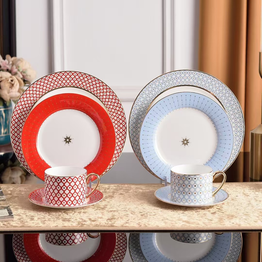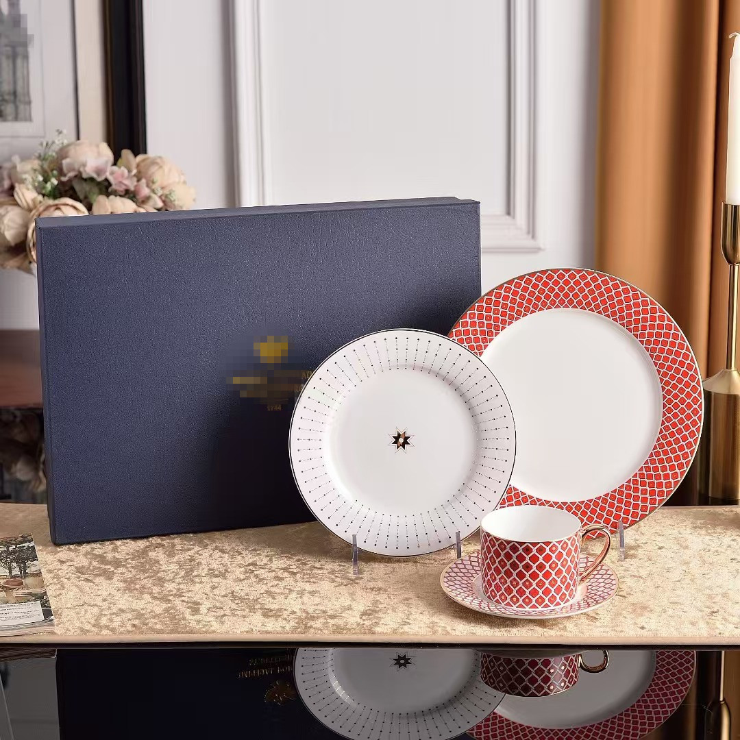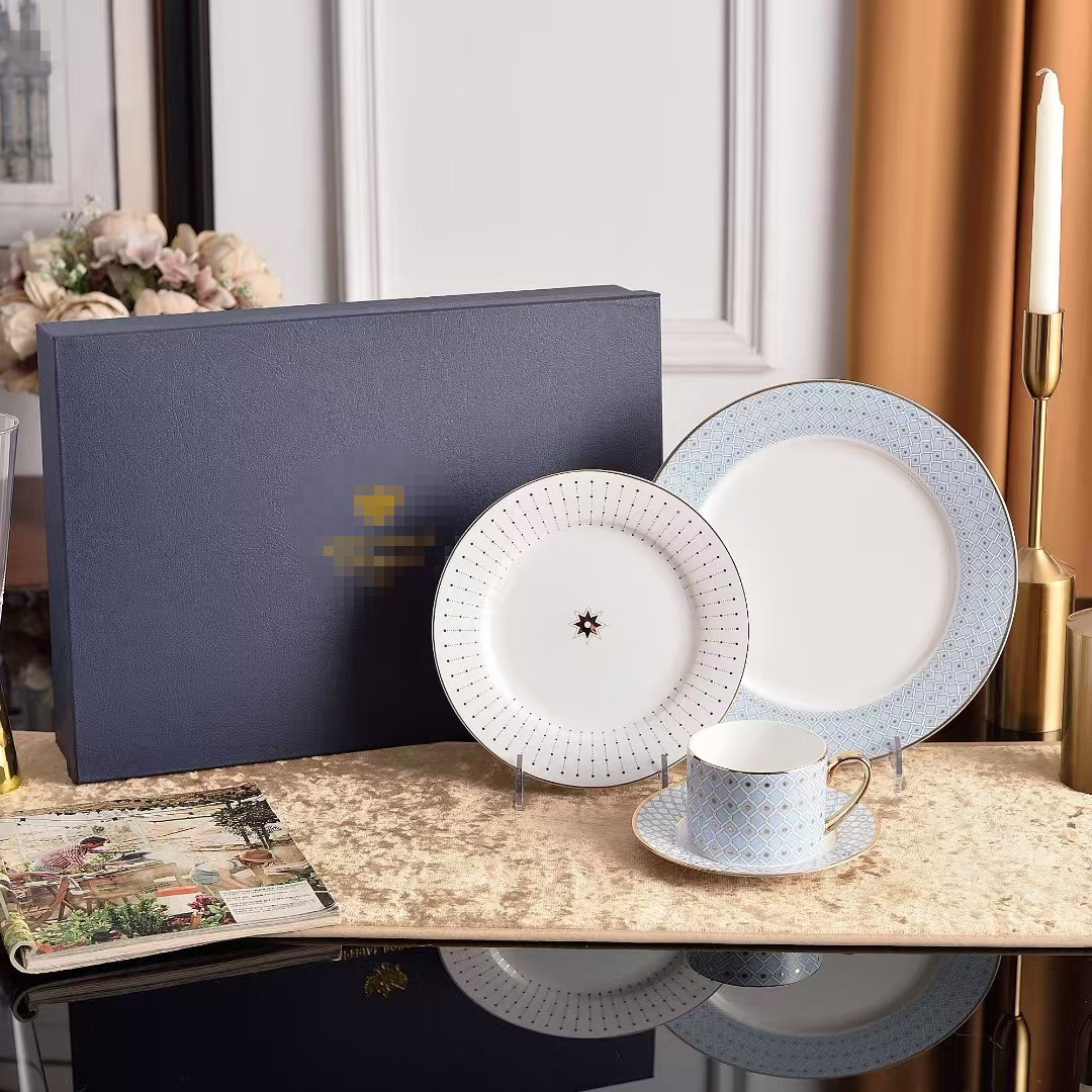 ヨーロッパ式の食器の骨の磁器の個性の西洋料理の皿の幾何学のアイデアの家庭用のステーキの皿の日光の杯の皿のセットの卸売り