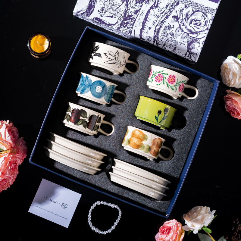 2025新型軽豪華レトロ手描きコーヒーカップ皿ギフトボックス