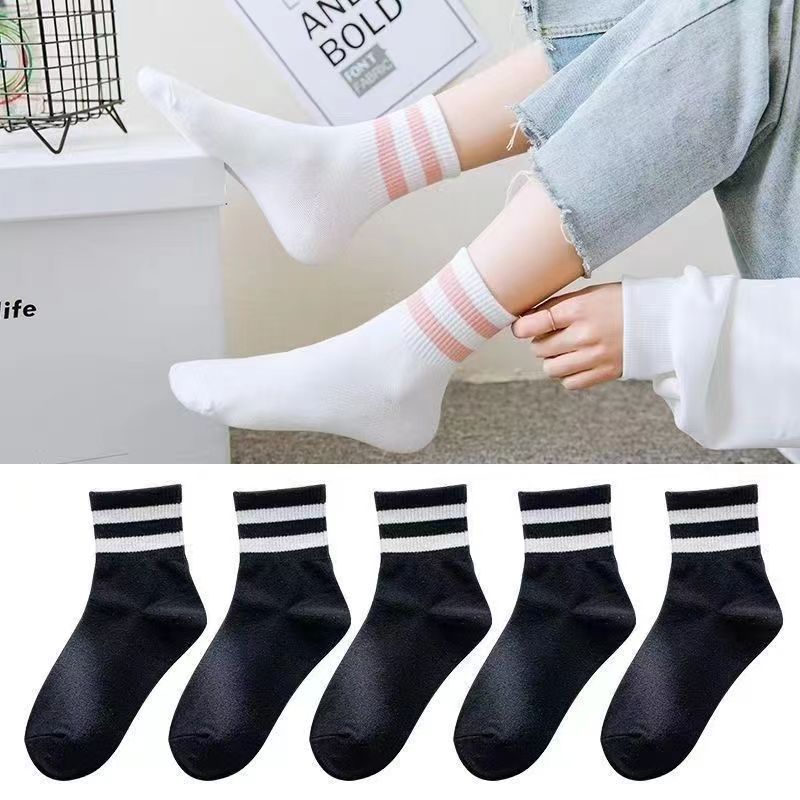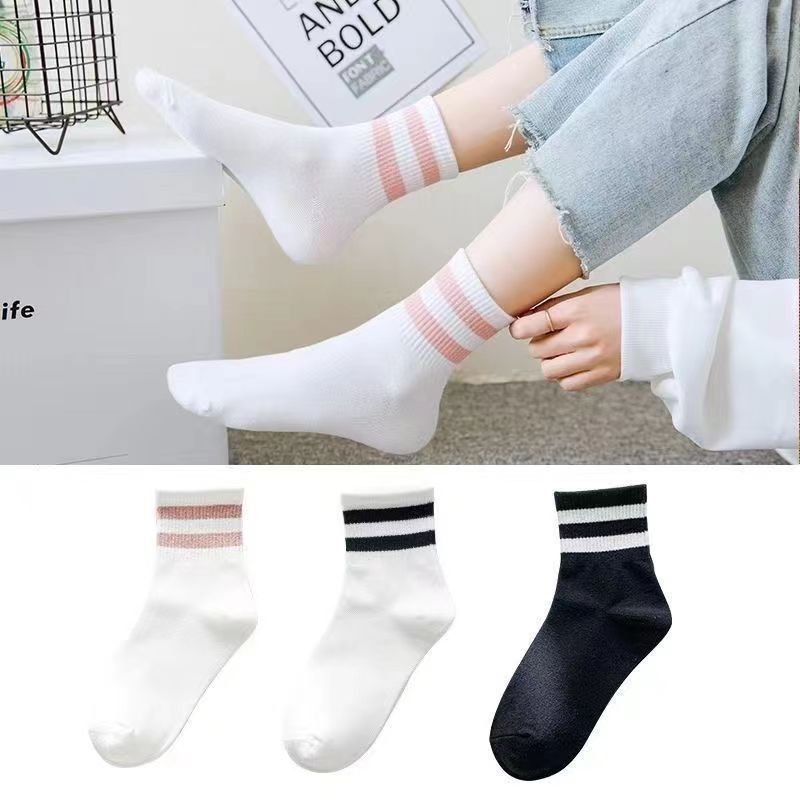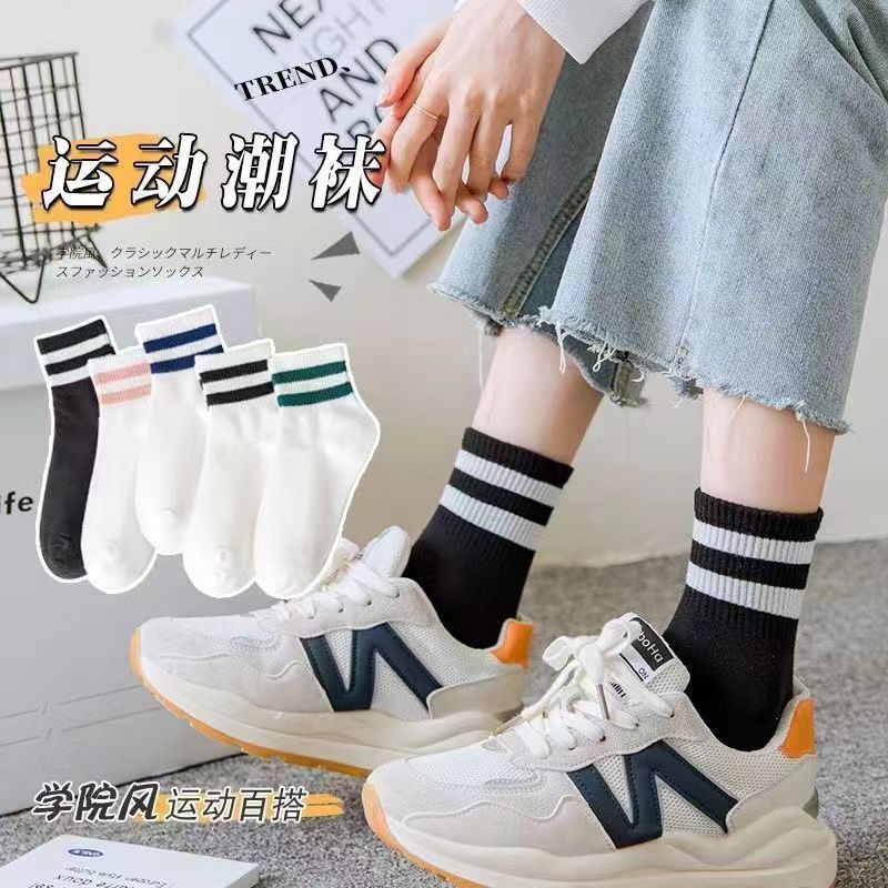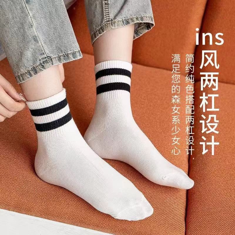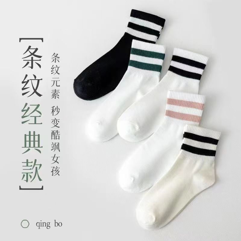ストライプ春秋タイプAネットレッド韓国版ins百合二本の鉄棒女性靴下中筒靴下カジュアル吸汗学生女性靴下