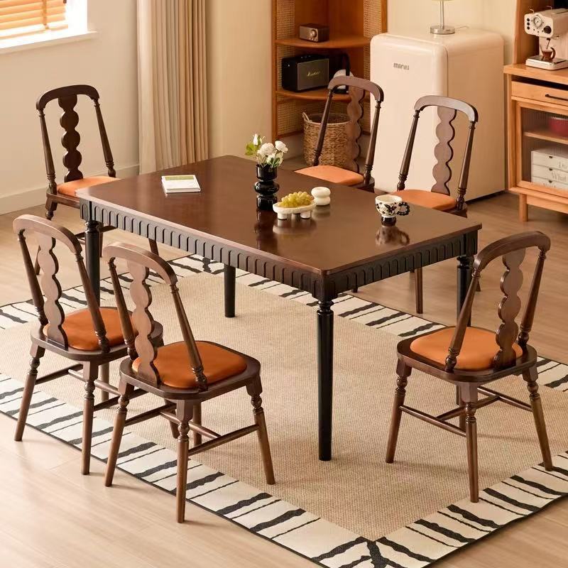 フレンチアメリカン無垢材レトロダイニングテーブルダイニングテーブルと椅子の組み合わせ小さなアパートアンティークスタイルホーム長方形テーブルダイニングテーブル