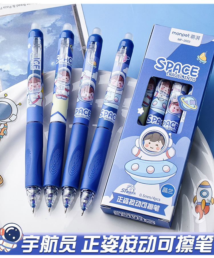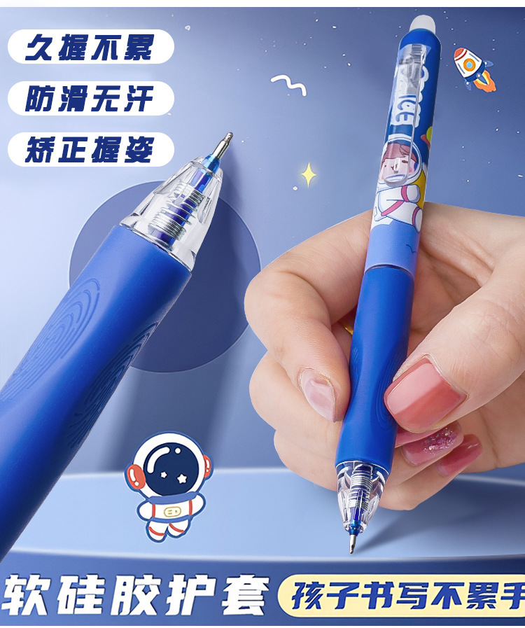 小学生専用ソフトグリップ押し押しペン0.5m晶青炭黒摩易拭熱可拭水ペン中性ペン