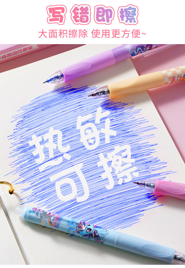 ソフトグリップクリック式消せるペン、感熱式消せるゲルペン、0.5stチップ、小学生向け、熱消せる、滑らかな書き心地