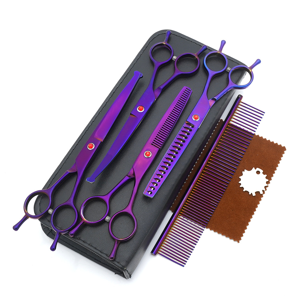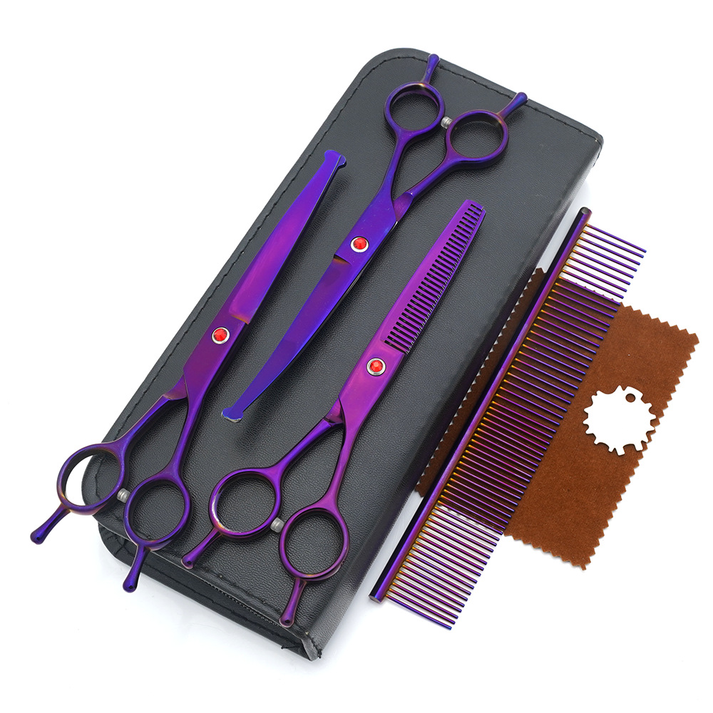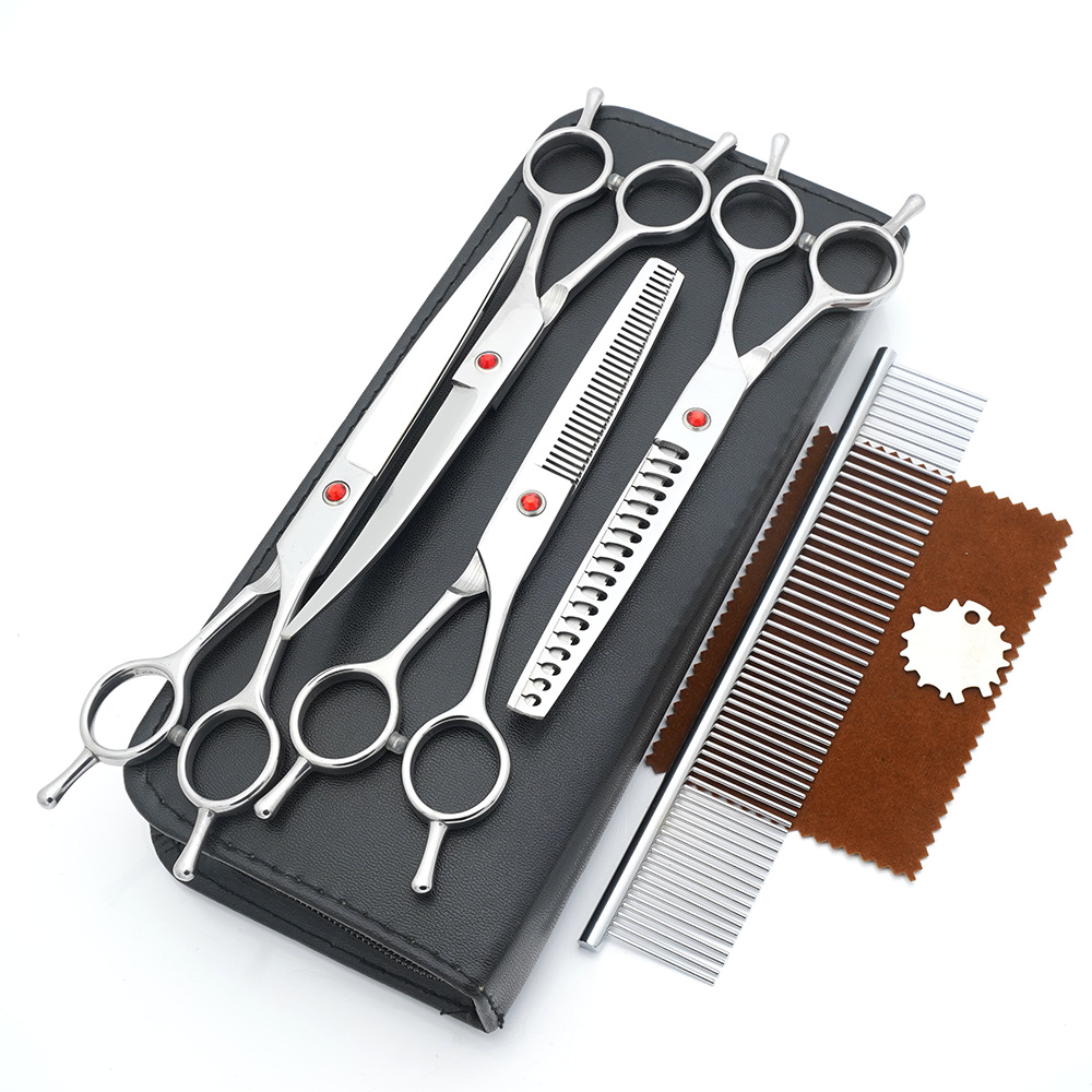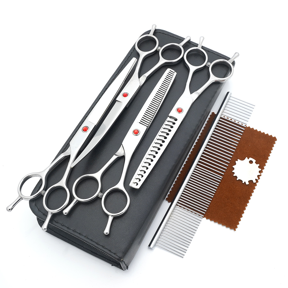 メーカー直供ペット美容ハサミセット平切上曲げ猫犬美容理髪ペットハサミ