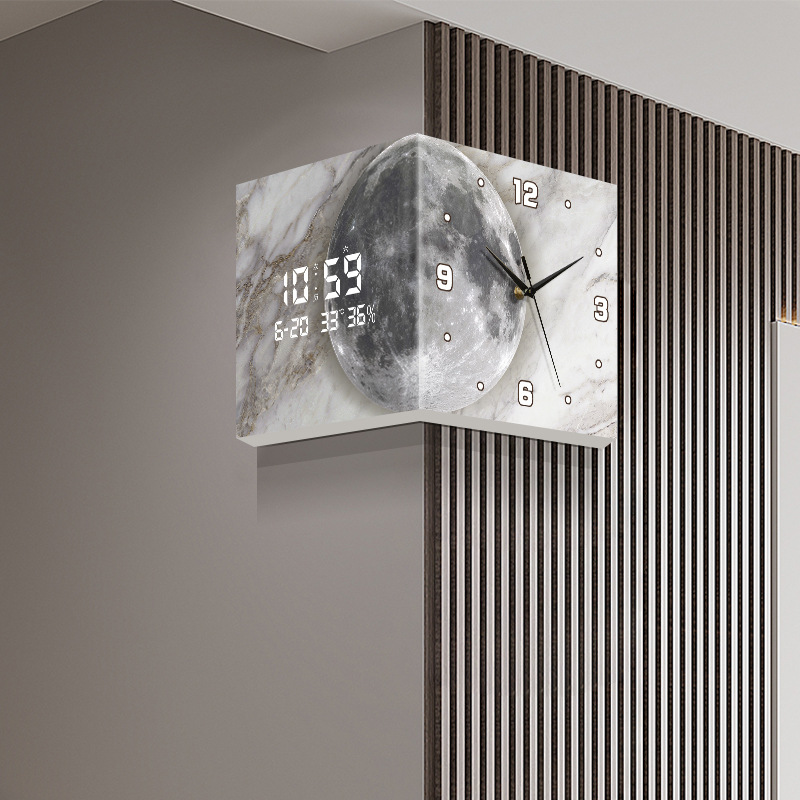 国境を越えた売れ筋リビングルームコーナー両面壁時計クリエイティブ時計ウォールランプムーンコーナー時計パンチフリーデジタルディスプレイ時計