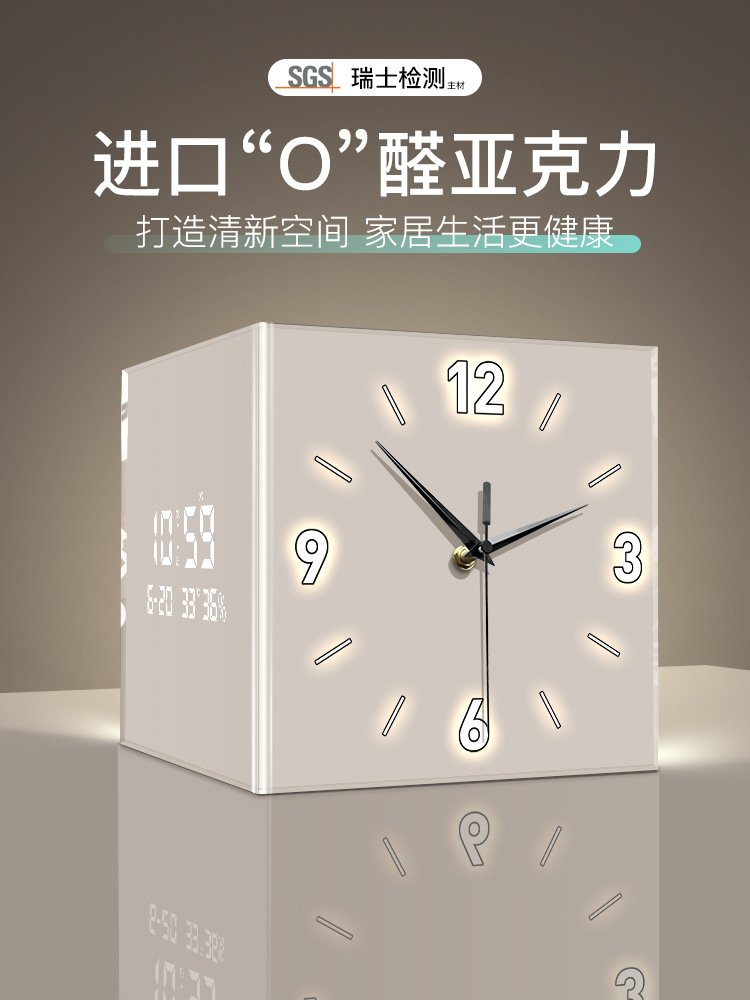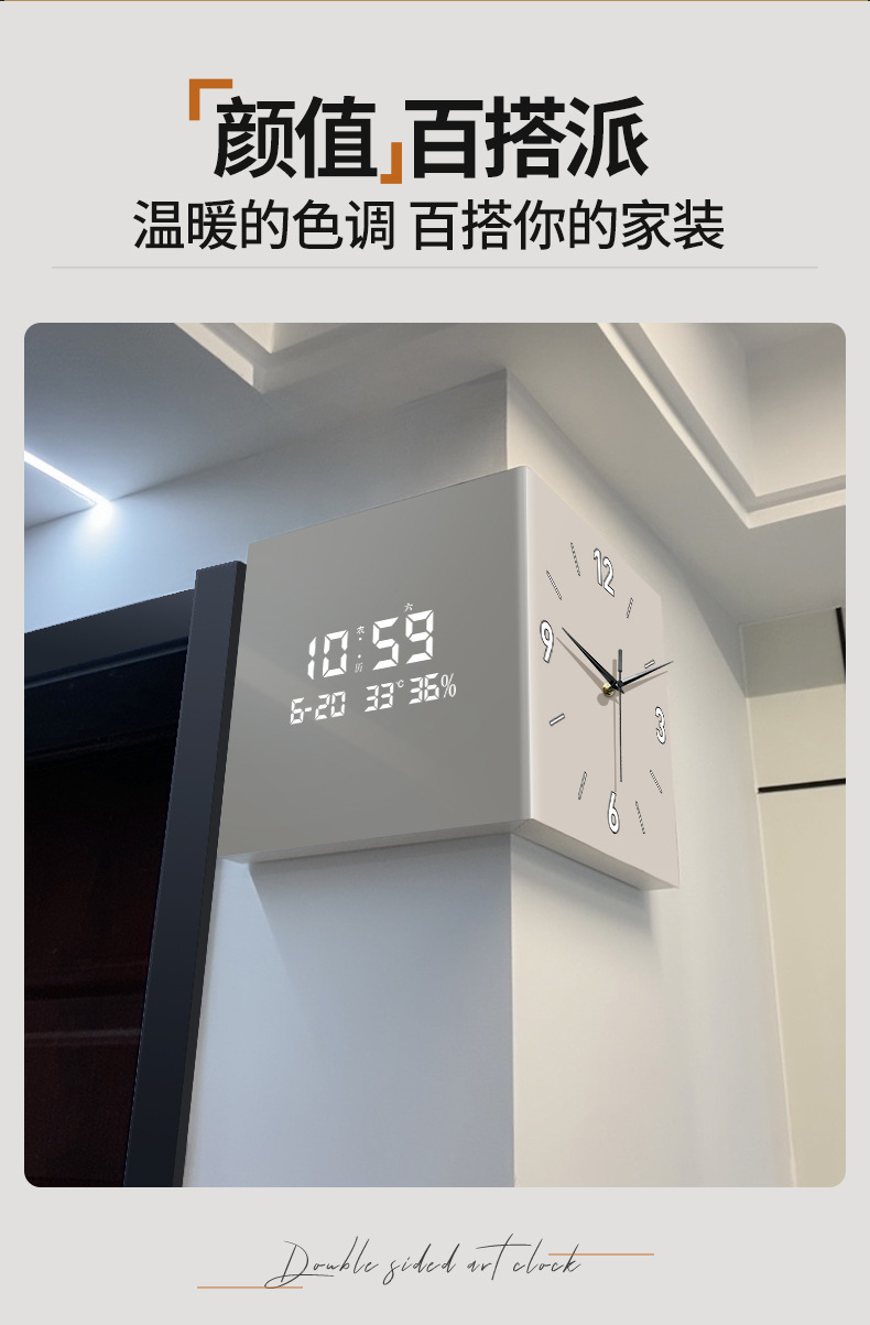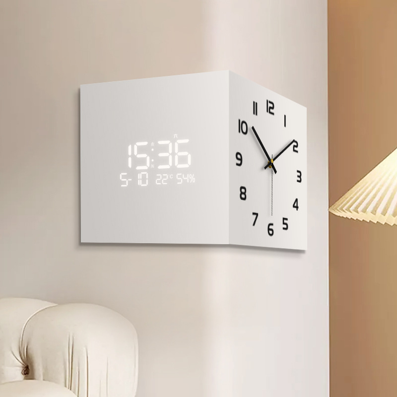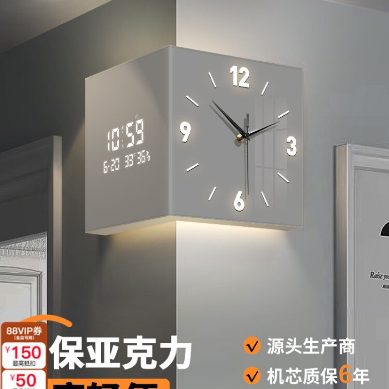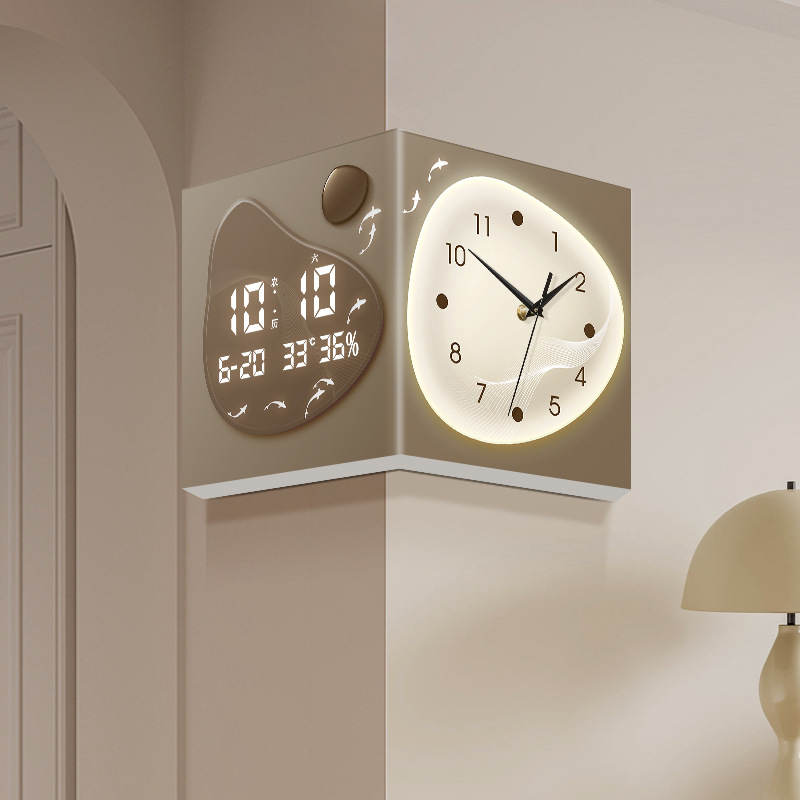 リビングコーナー時計万年暦新作電子時計モダンシンプル両面掛け時計クリエイティブコーナー壁掛け時計