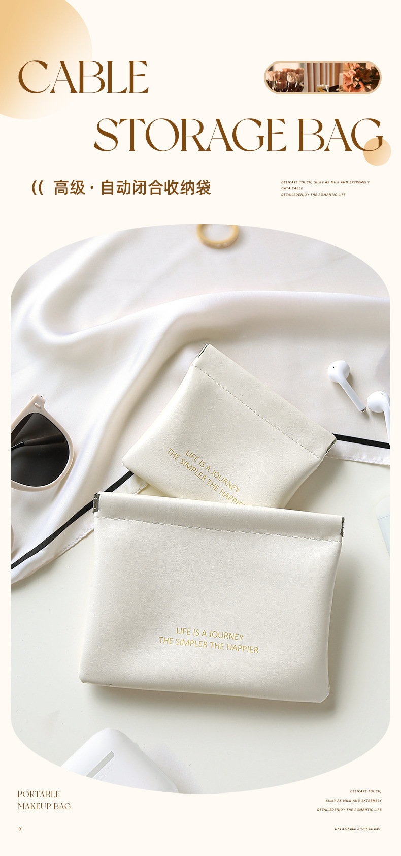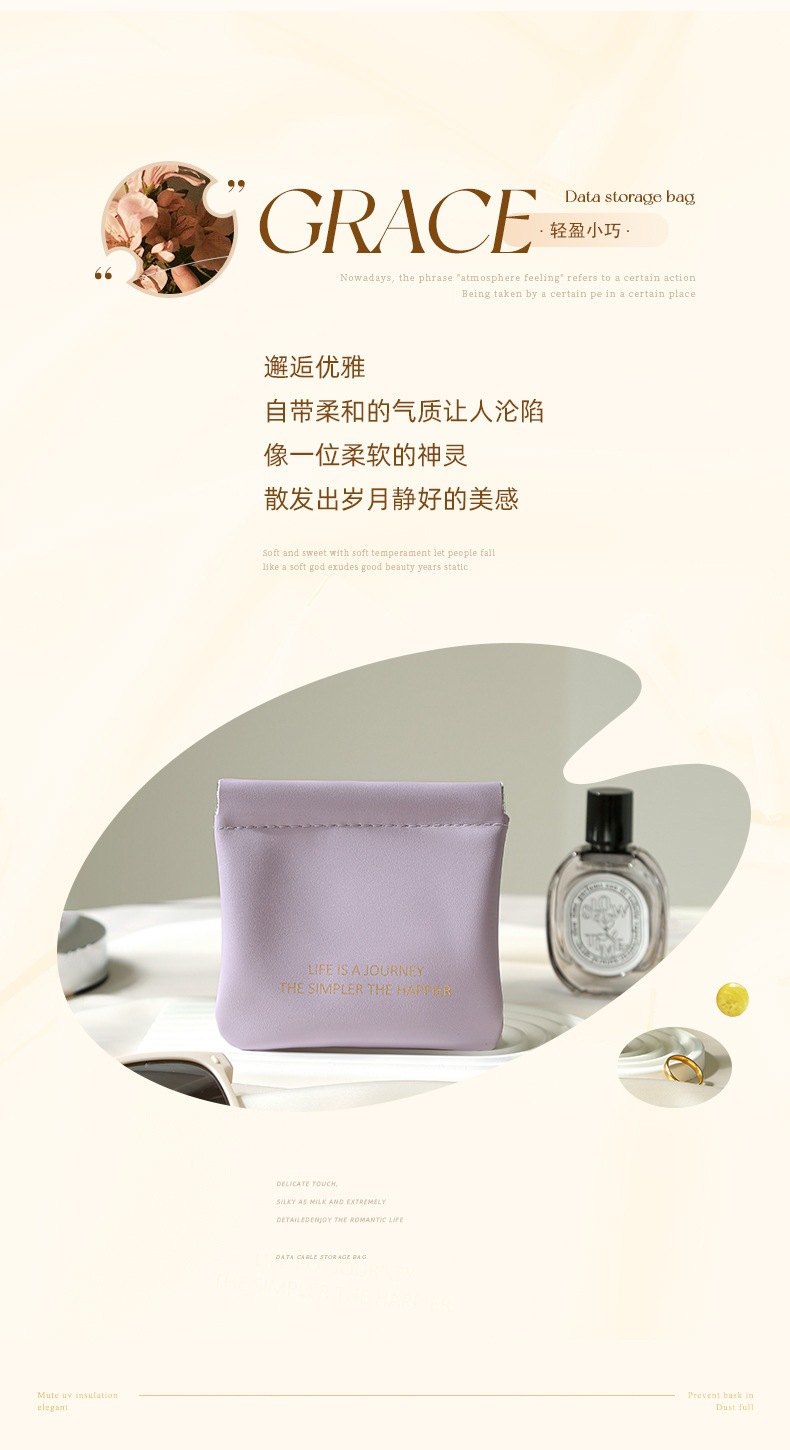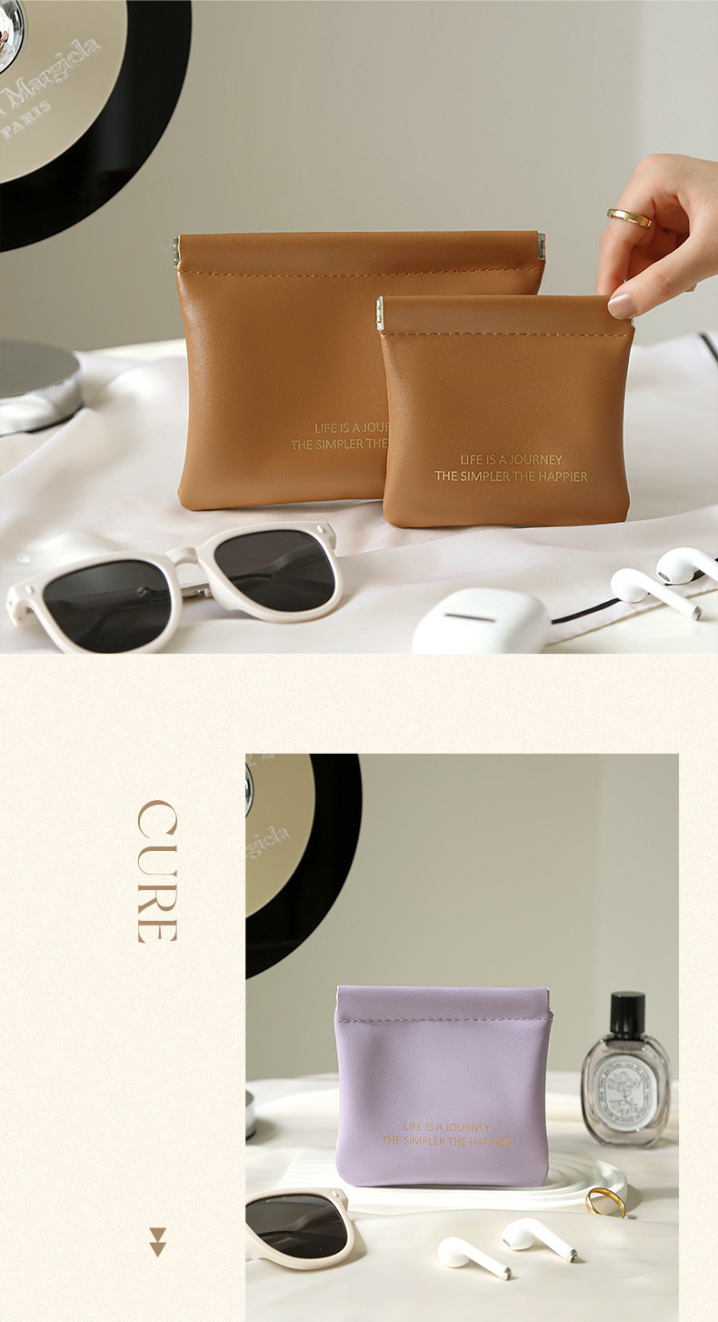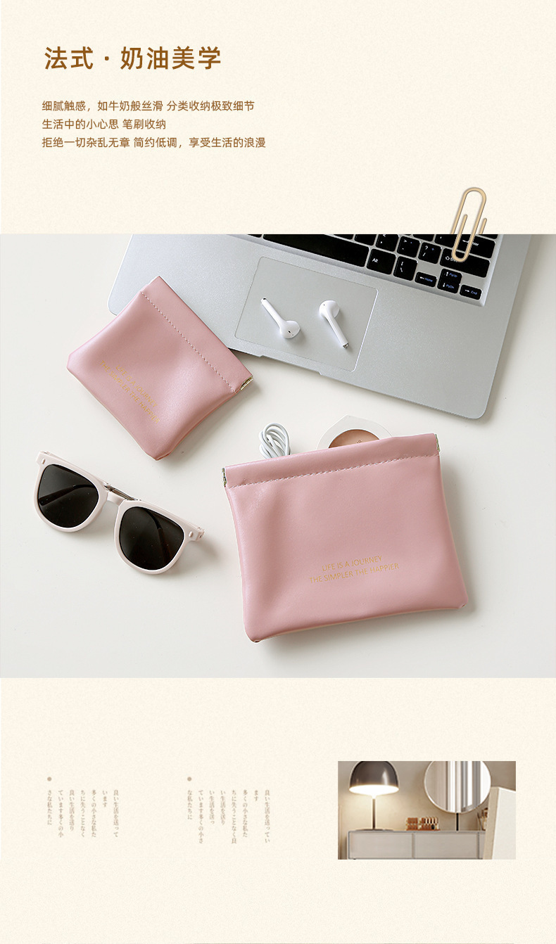 PU弾片包自動閉鎖収納包データ線イヤホン収納袋ミニ携帯口紅包小銭入れ