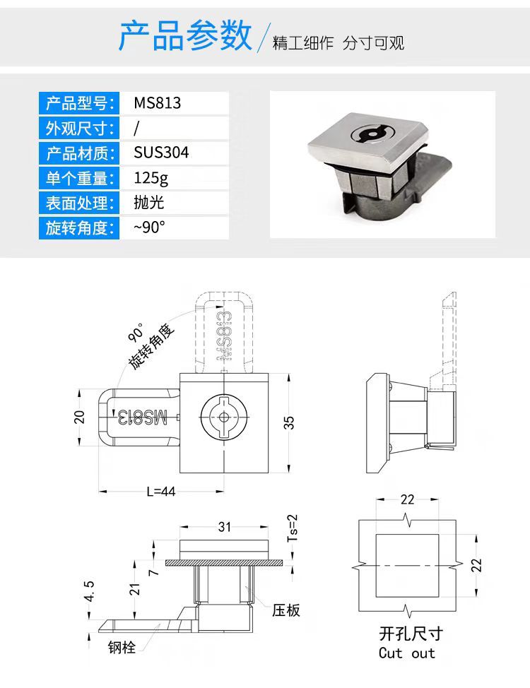 AB509平面ロックボタンスプリングロック配電箱消防箱ドアロックケースMS603工業キャビネット汎用ロック