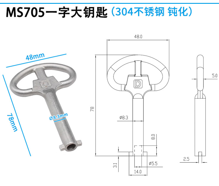 MS705型ロックシリンダー、三角キー、エレベーター配電盤キャビネットドアキー、水道メーターキャビネットキー、回転舌錠