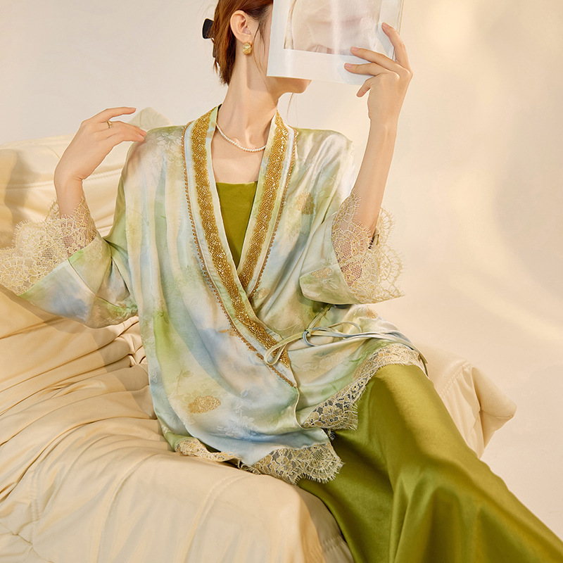中国風新中式刺繍ビーズレースデザインカーディガンジャケットアセテートサスペンダースカートセット女性用 ZXモデルN4100