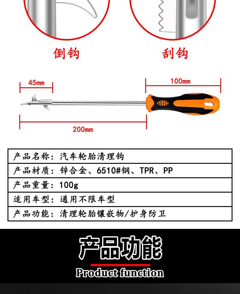 車のタイヤの石取りツール、タイヤの石取りフック、車の石取り、石取りフック