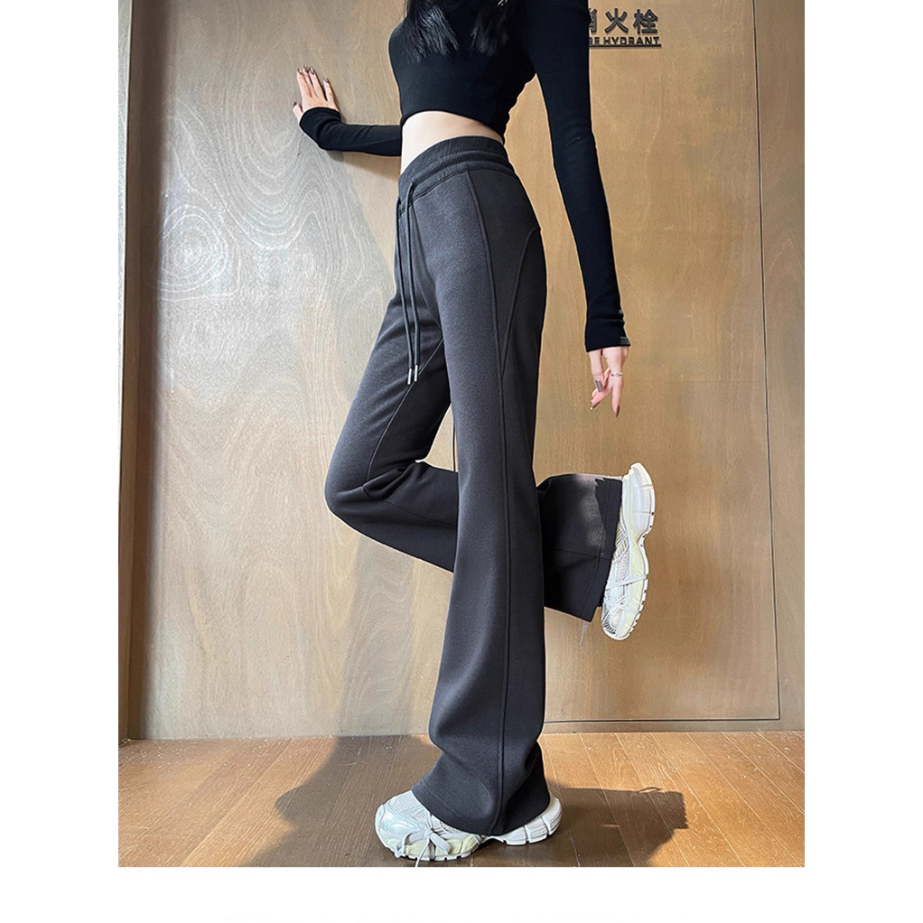 2025新款早秋美式微喇叭休闲裤女马蹄长裤垂感修身显瘦高腰拖地裤