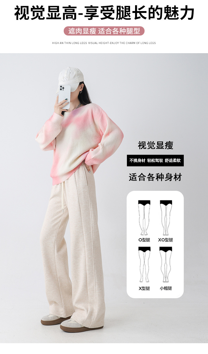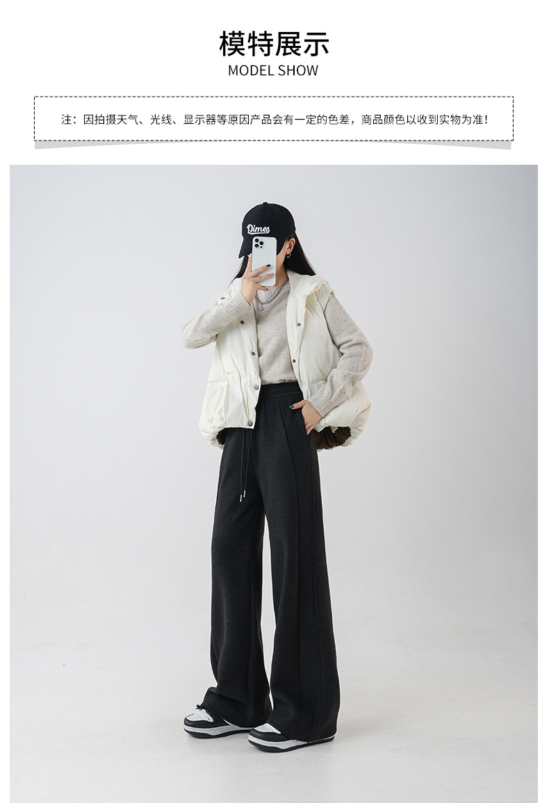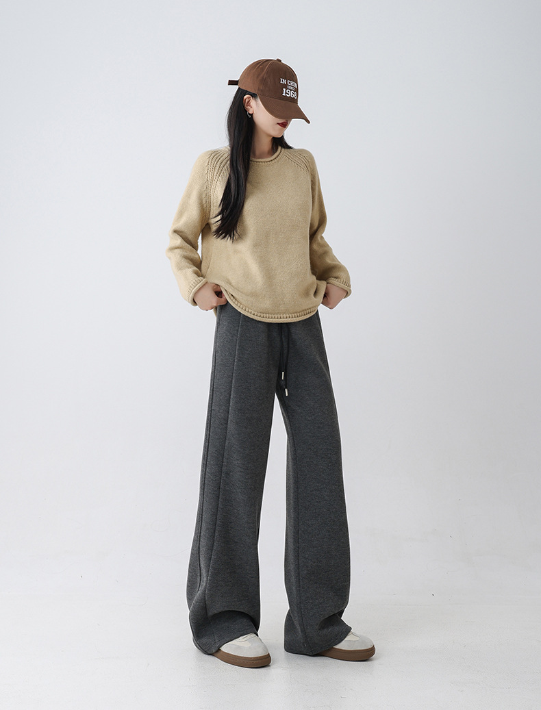 2025秋冬新款山羊毛蚕丝加厚保暖直筒阔腿裤拖地休闲宽松高腰裤子