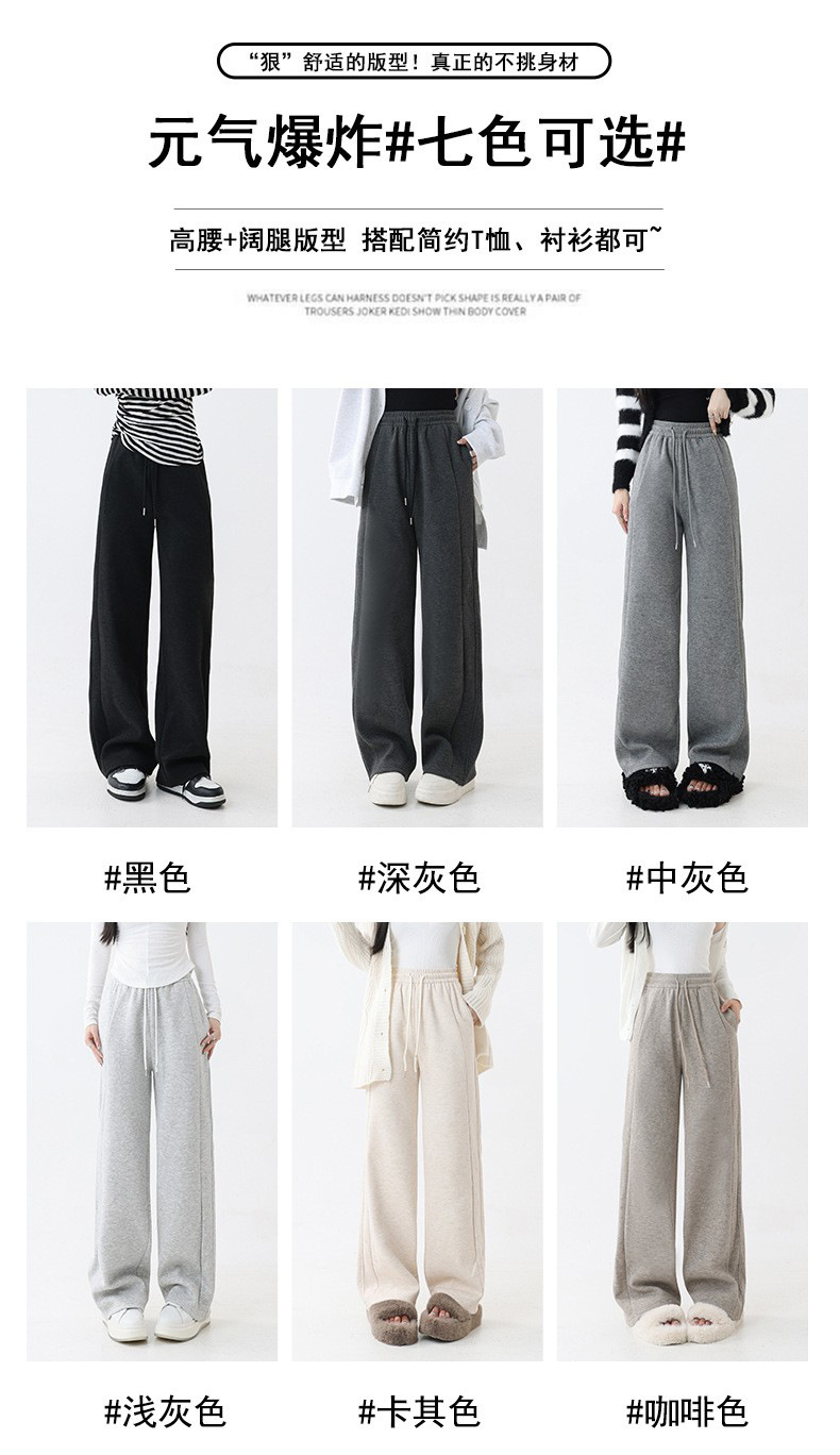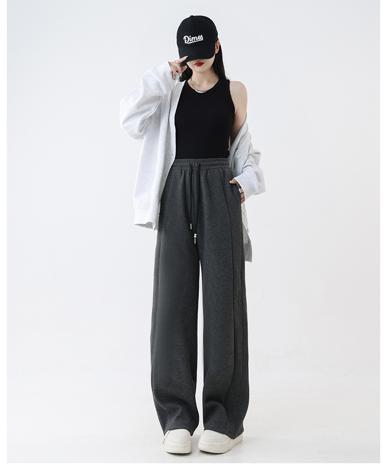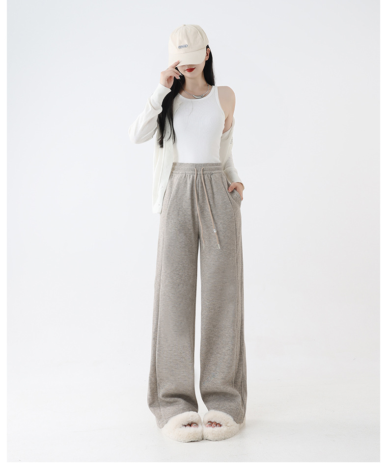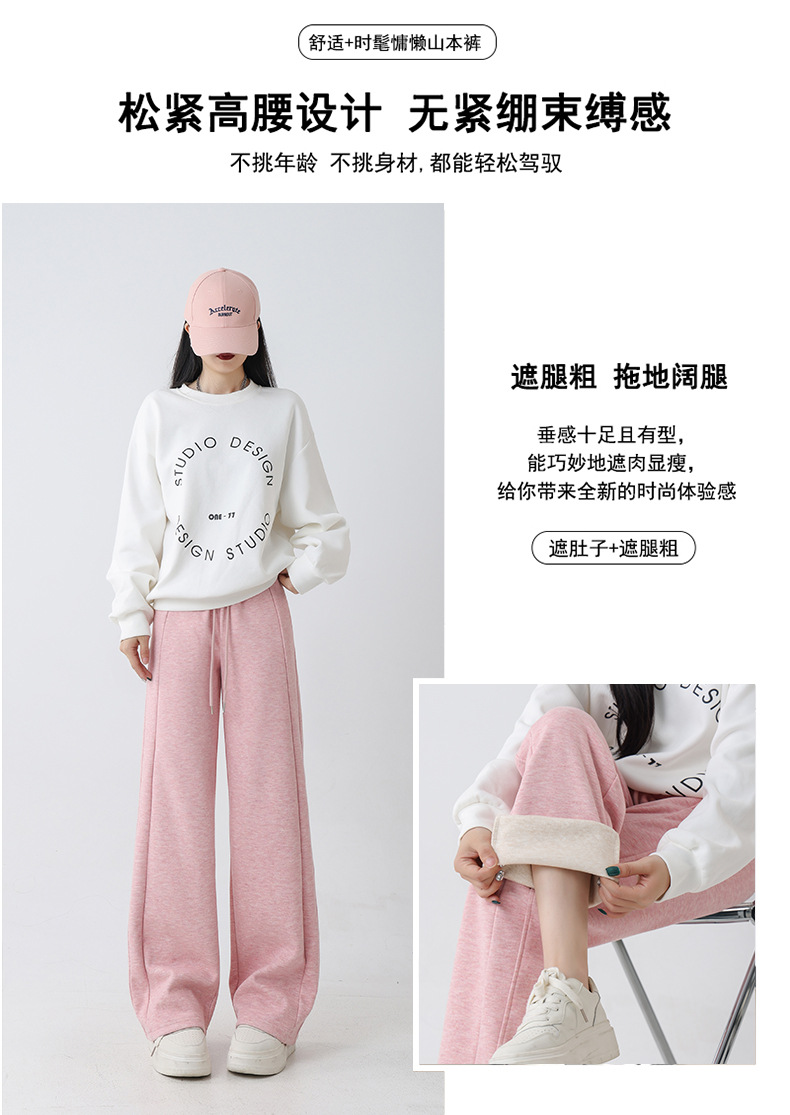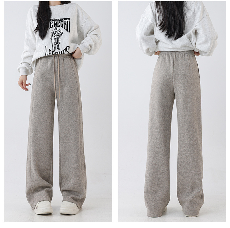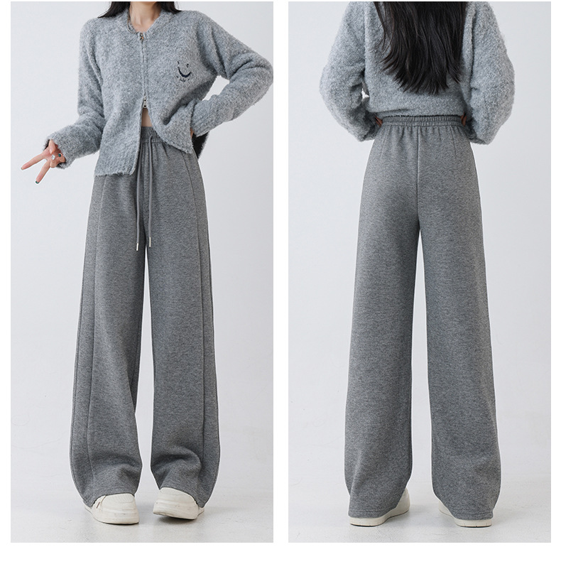 2025秋冬裏起毛厚手ソフトもち米素材ワイドレッグパンツ レディース ハイウエストストレートスポーツカジュアルゆったりロングパンツ 着痩せ効果