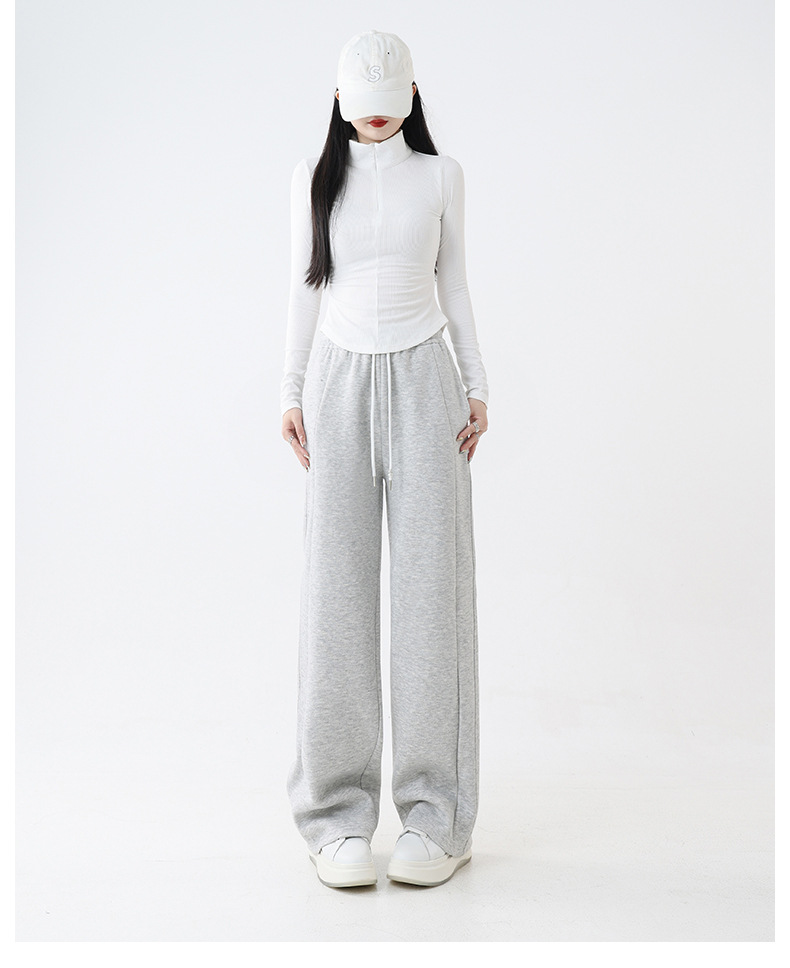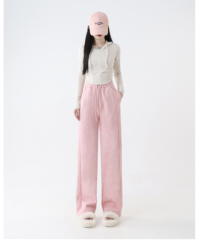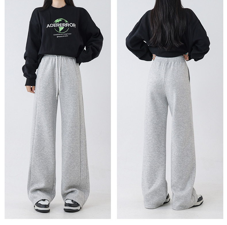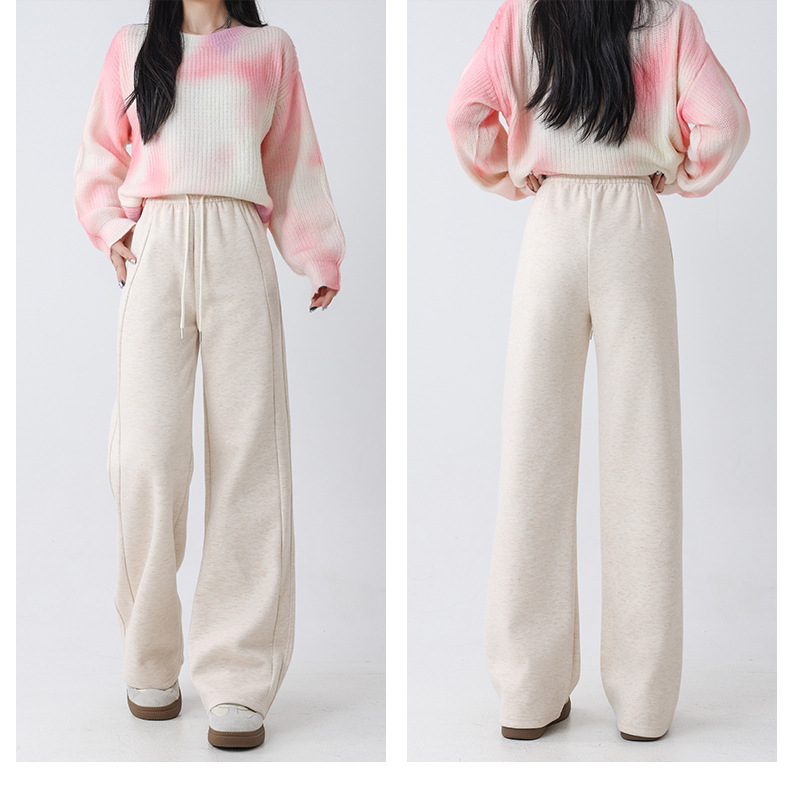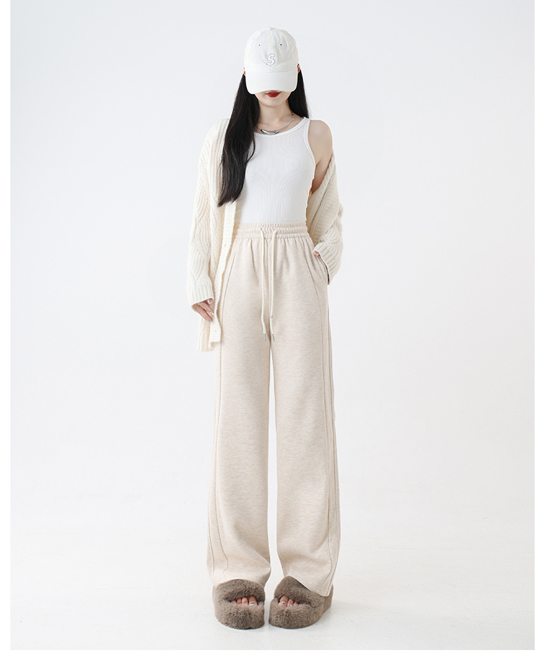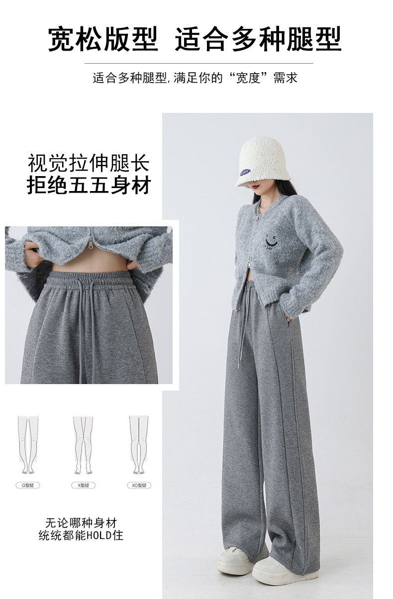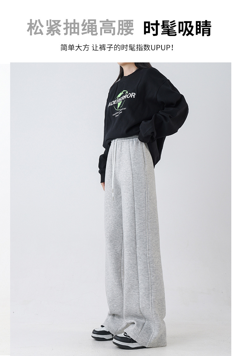 2025秋冬裏起毛厚手ソフトもち米素材ワイドレッグパンツ レディース ハイウエストストレートスポーツカジュアルゆったりロングパンツ 着痩せ効果