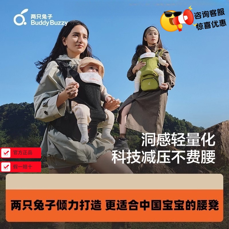 两只兔子Across洞感4D腰凳背带二合一轻便两片式护腰便捷穿戴透气