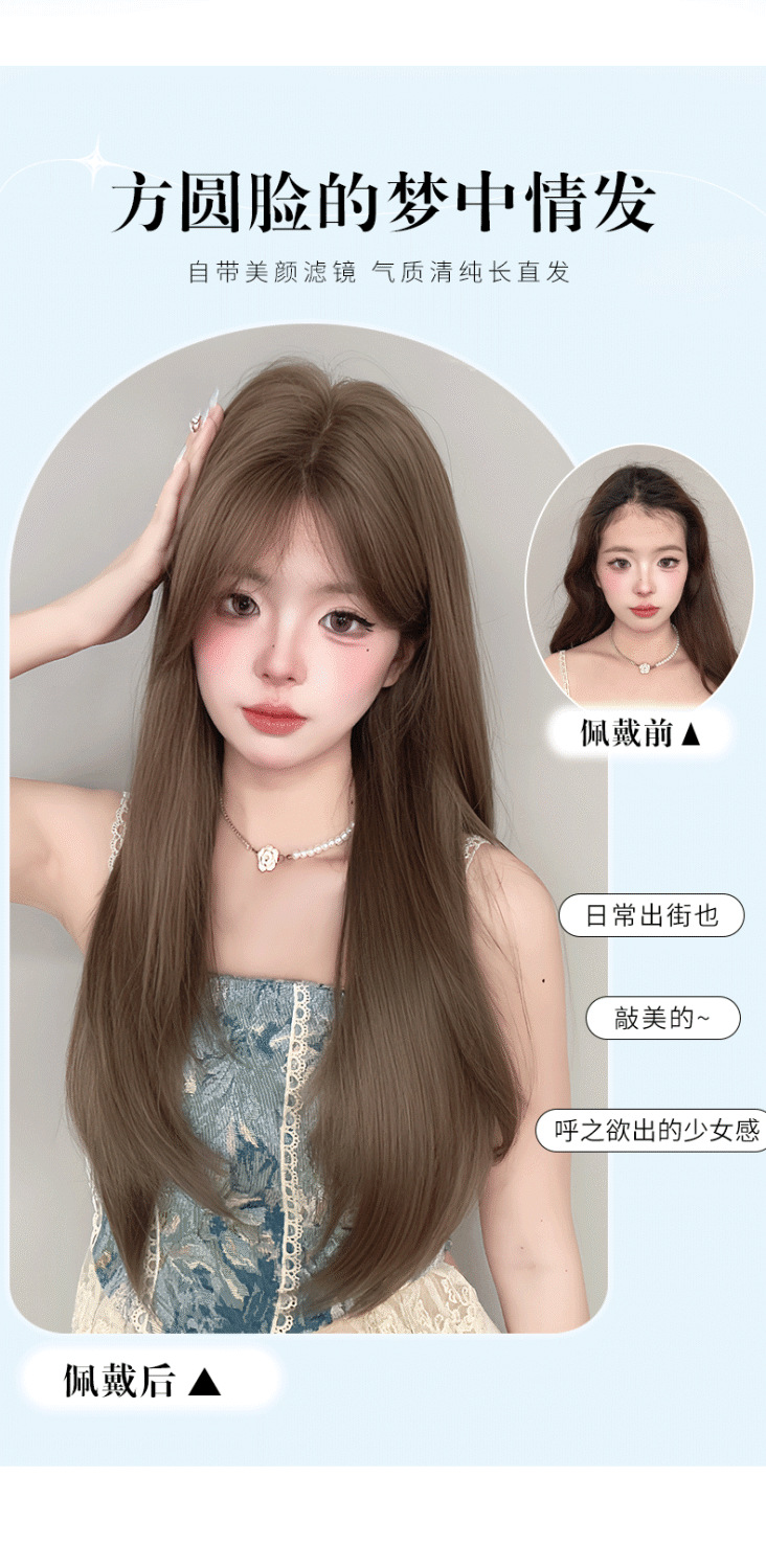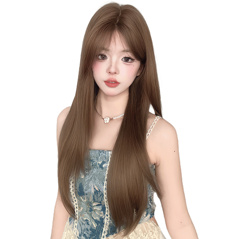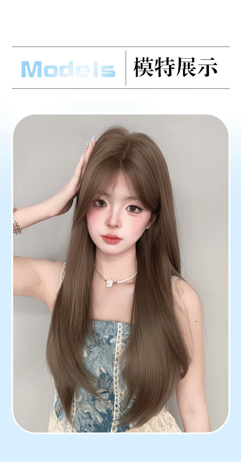 かつらの髪型 長いストレートヘアは前髪を平らにしたり、斜めにしたりすることができます