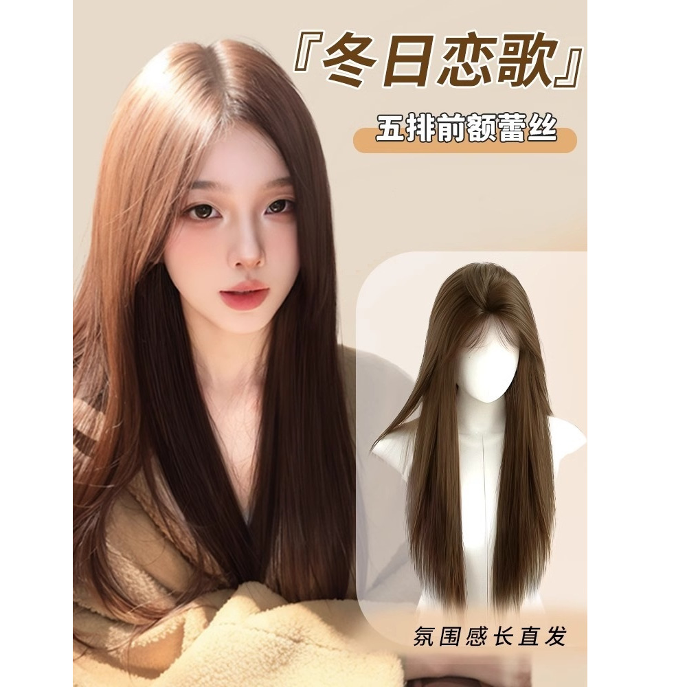 【冬の恋歌】かつらの全頭カバーの女性の中で長いストレートの額のレースの見えないシミュレーションの髪はかつらを整えます。