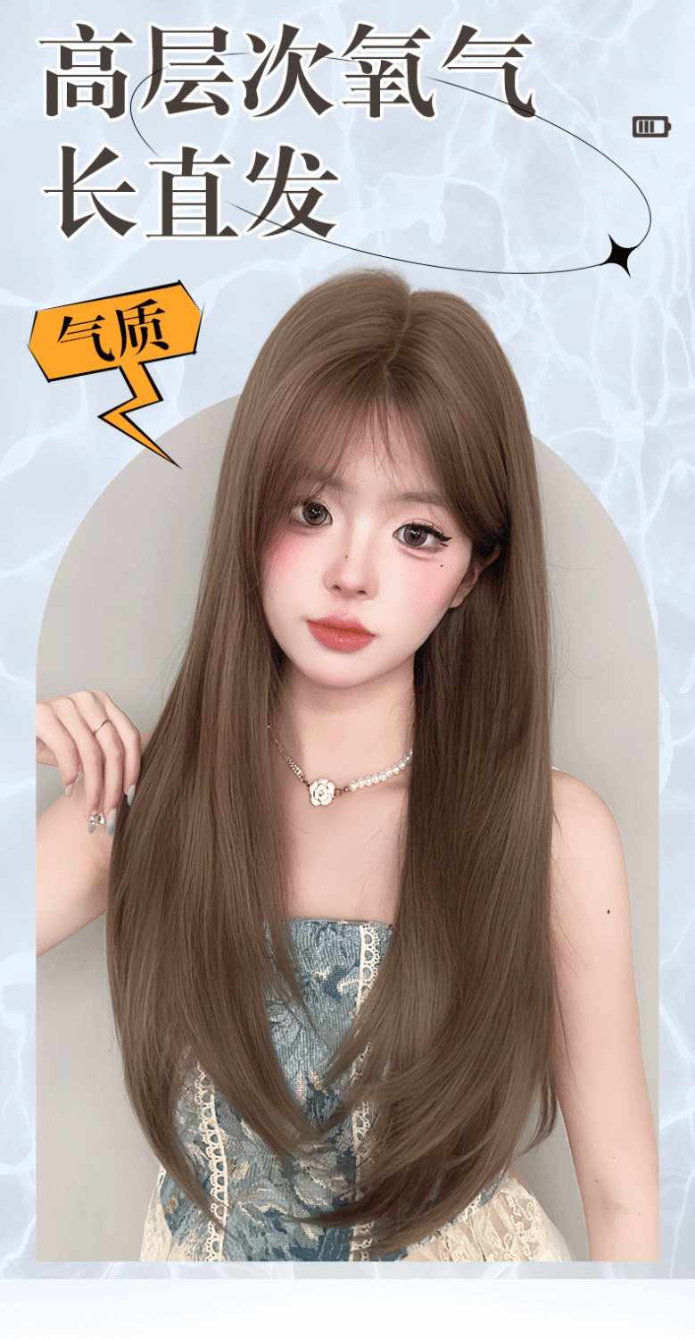 ネットの赤いタイプの中で前髪の長い直髪の新型のファッションは顔を直して年齢を減らします。