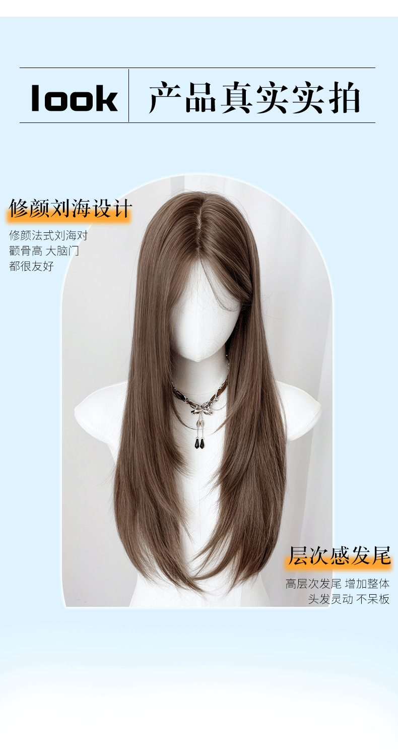 額レース高レベルかつら全頭カバー式榛果灰ブラウン中分長直髪自然シミュレーション王女洋気
