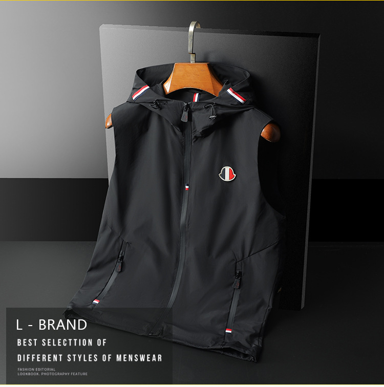 ヨーロッパ駅2024春秋新作男性帽子付き刺繍ベスト大サイズカジュアル高品質ファッションコート