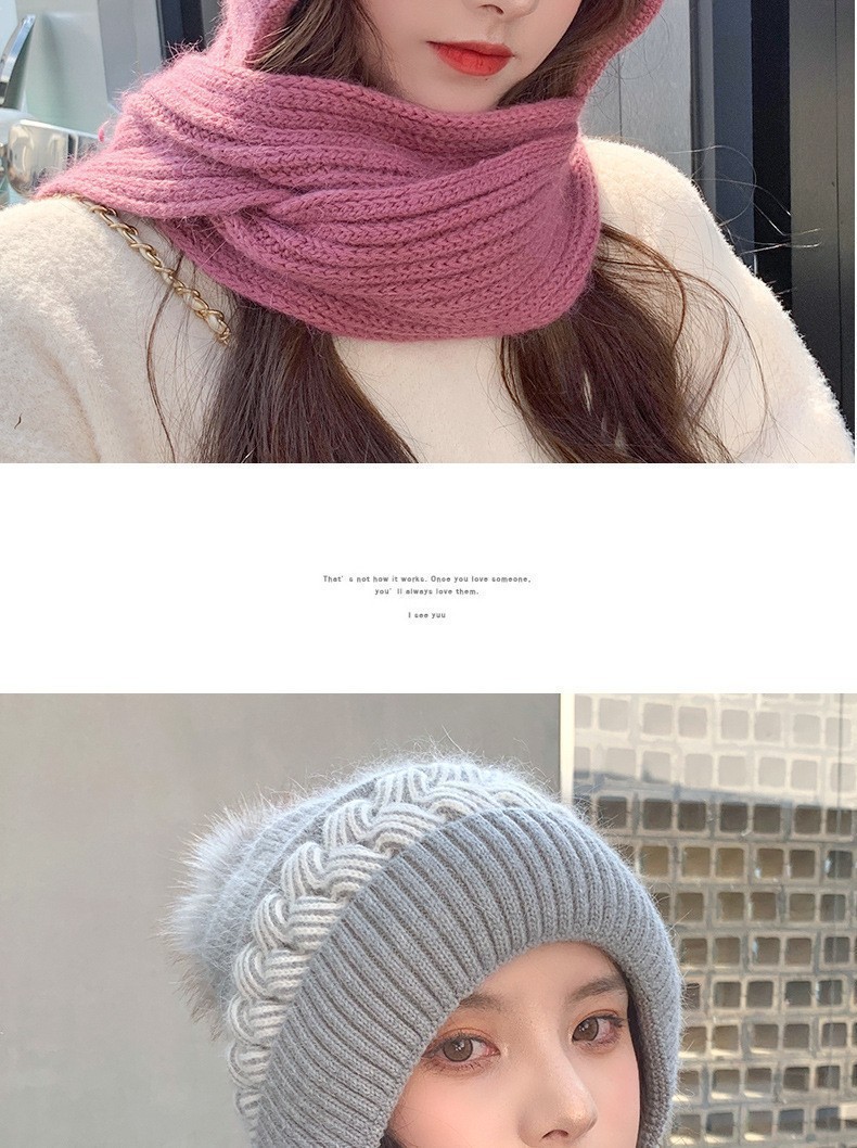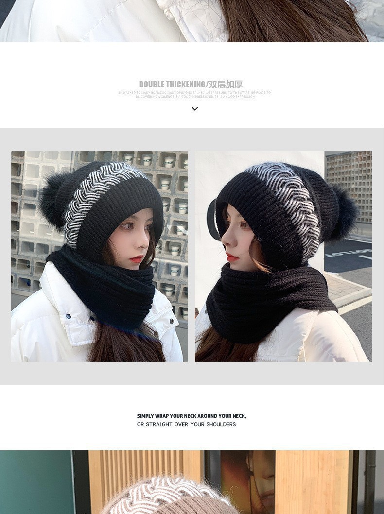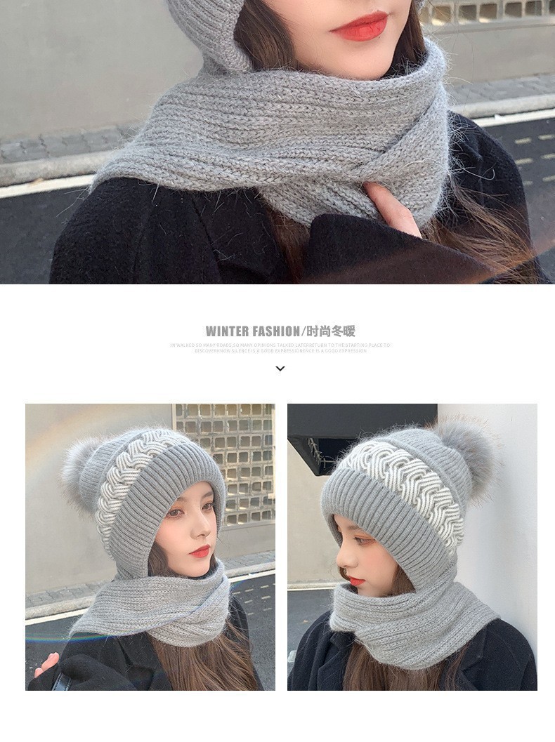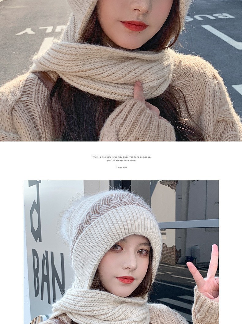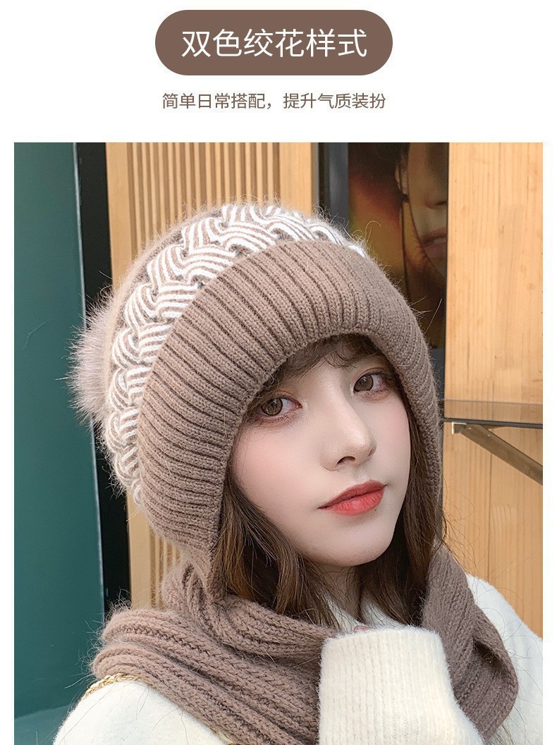 新しい冬のワンピースニット帽の女性保温帽とベルベットの厚い風雪帽子のマフラーが一体に耳を保護する毛糸帽