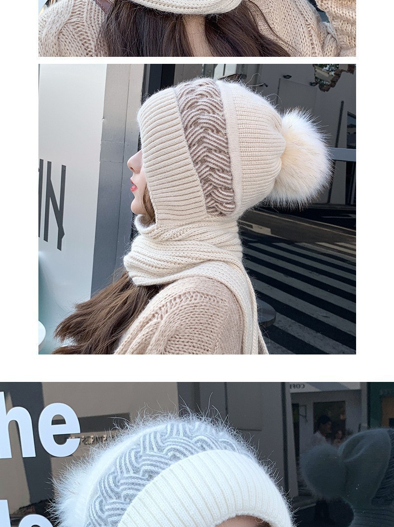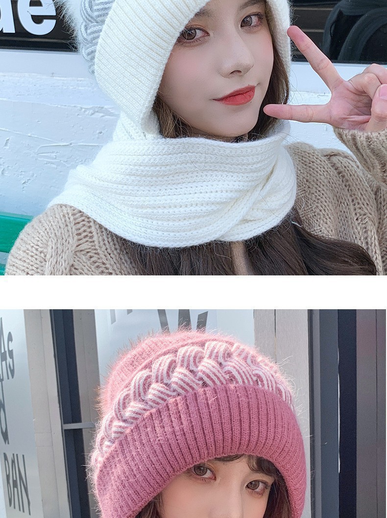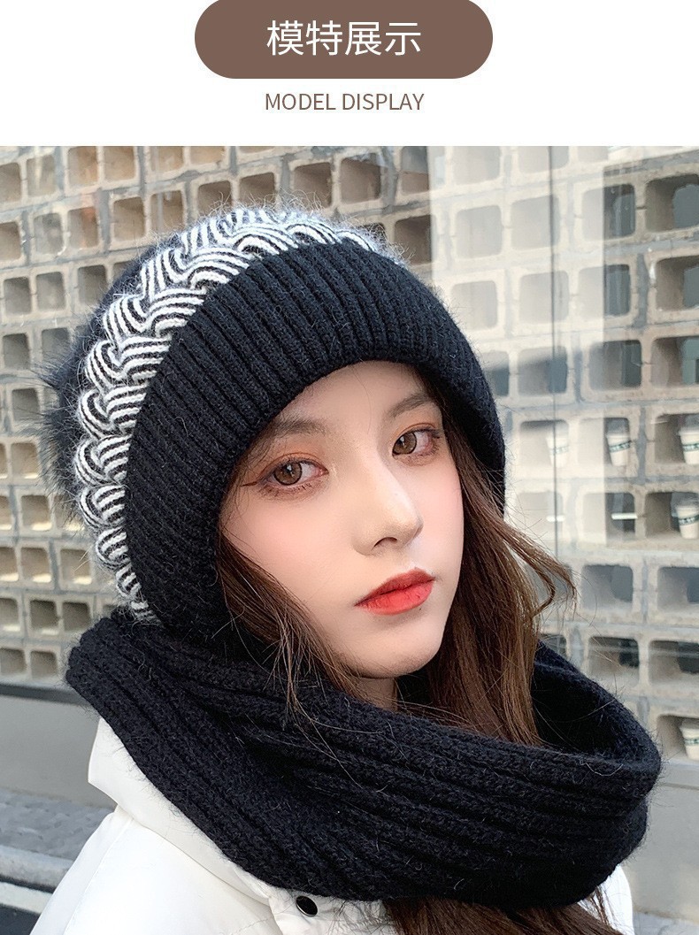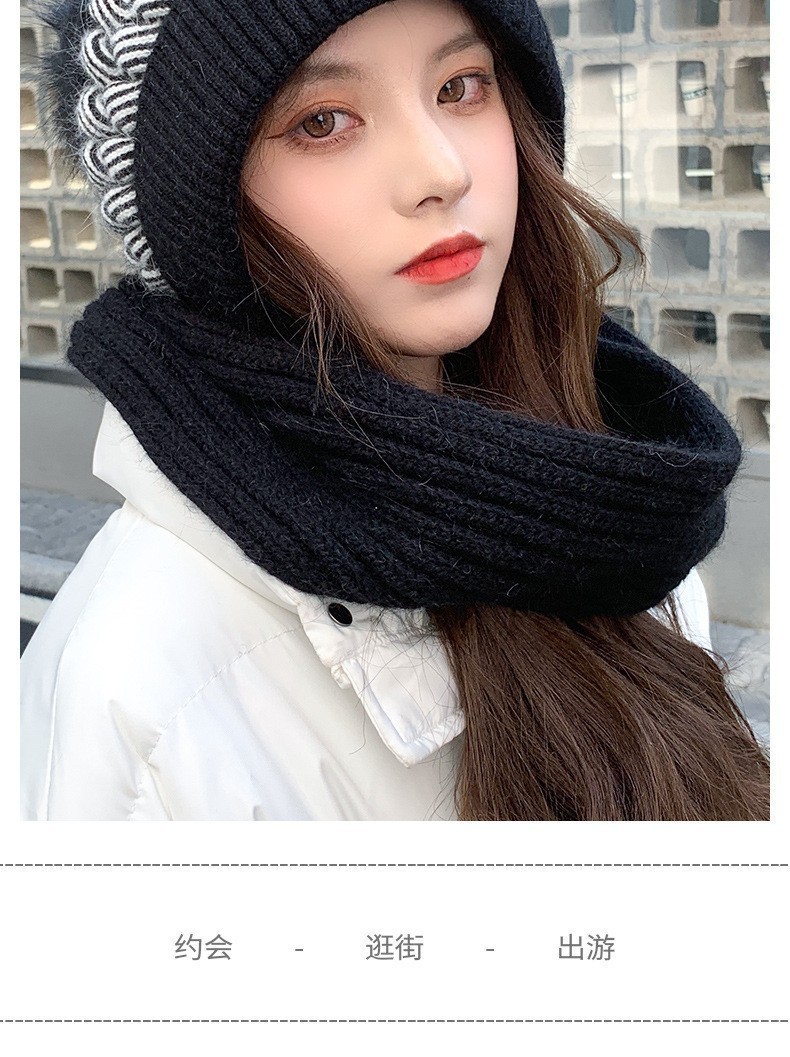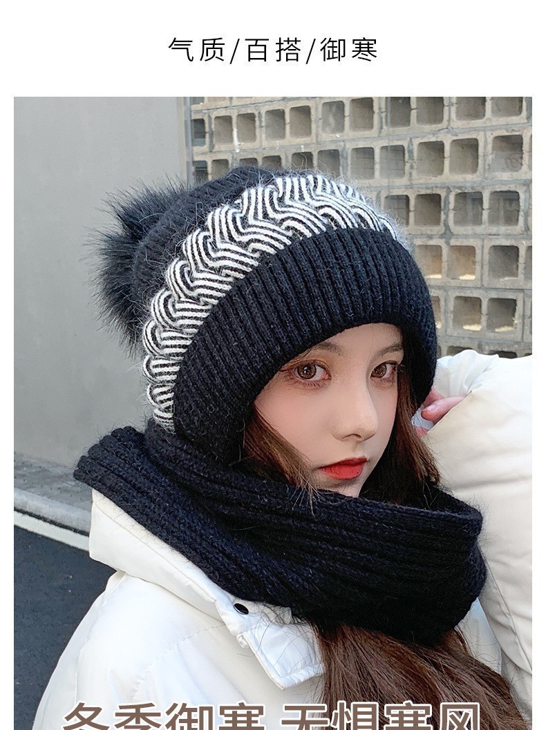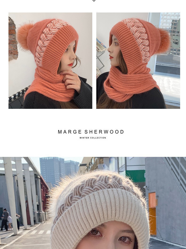 新しい冬のワンピースニット帽の女性保温帽とベルベットの厚い風雪帽子のマフラーが一体に耳を保護する毛糸帽