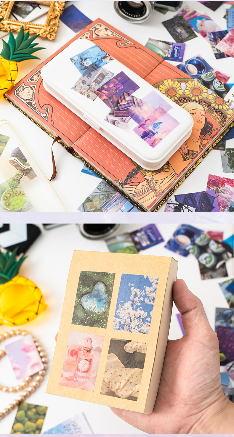 Ins文芸素材四季色柄シールはかわいい豆本装飾手帳diy創意貼り絵をつけます。