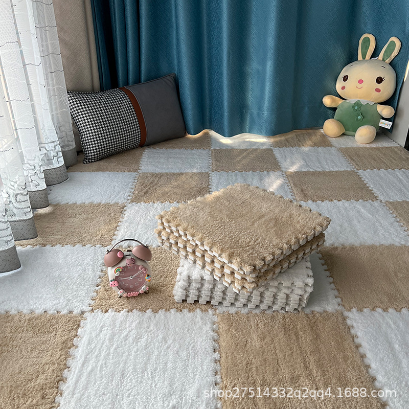 毛绒拼接地毯卧室少女房间阳台客厅大面积整铺免洗可裁剪泡沐垫子
