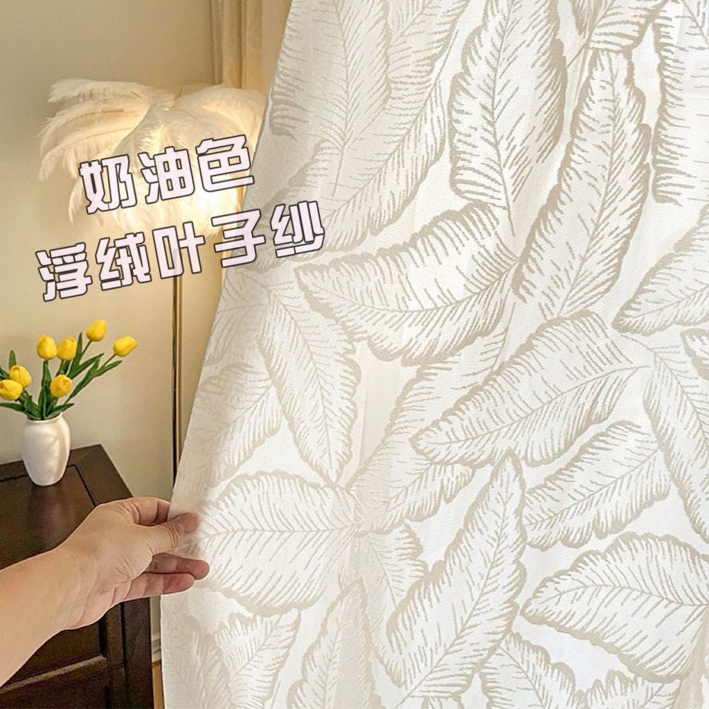 カーテンのカーテンのメーカーの布地の卸売りの完成品の越境の対外貿易の窓の紗の北欧の乳の茶色の浮き彫りの葉の糸の白い糸