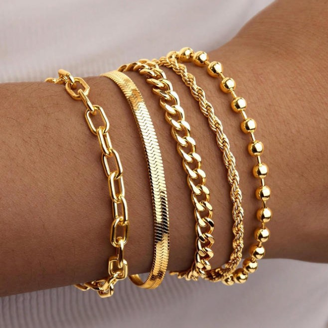 Amazon 新しいファッションシンプルな電気メッキシンプルなペーパークリップキューバチェーンビーズ 5 ピースブレスレットセットハンドアクセサリー