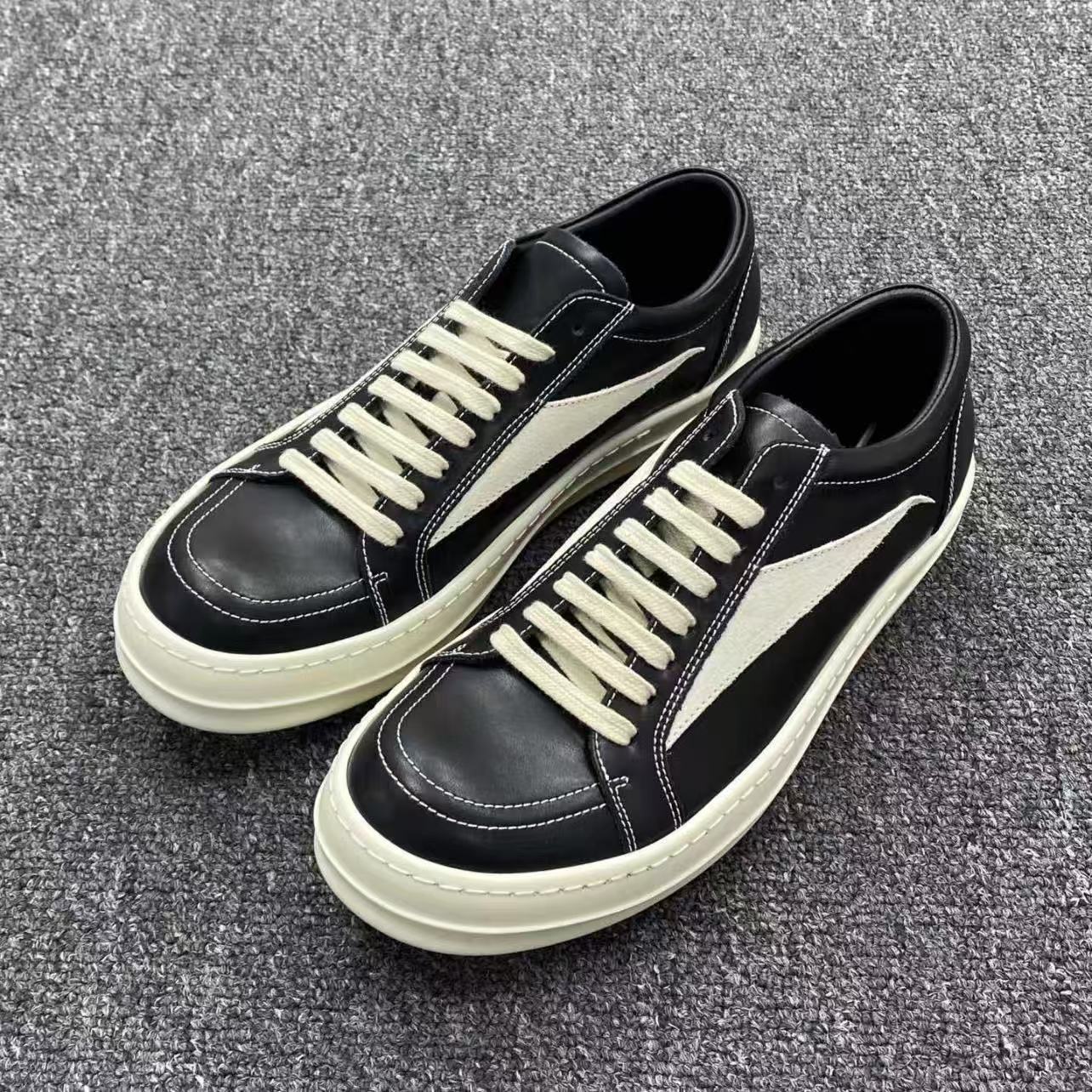 RO真の革靴オーウェンスの権利侵害モデルの新型男女カップルの革の面のスエードの灰色の白黒の低い靴の休憩の運動靴