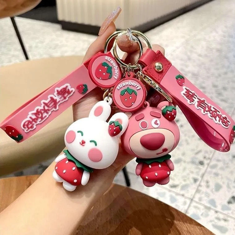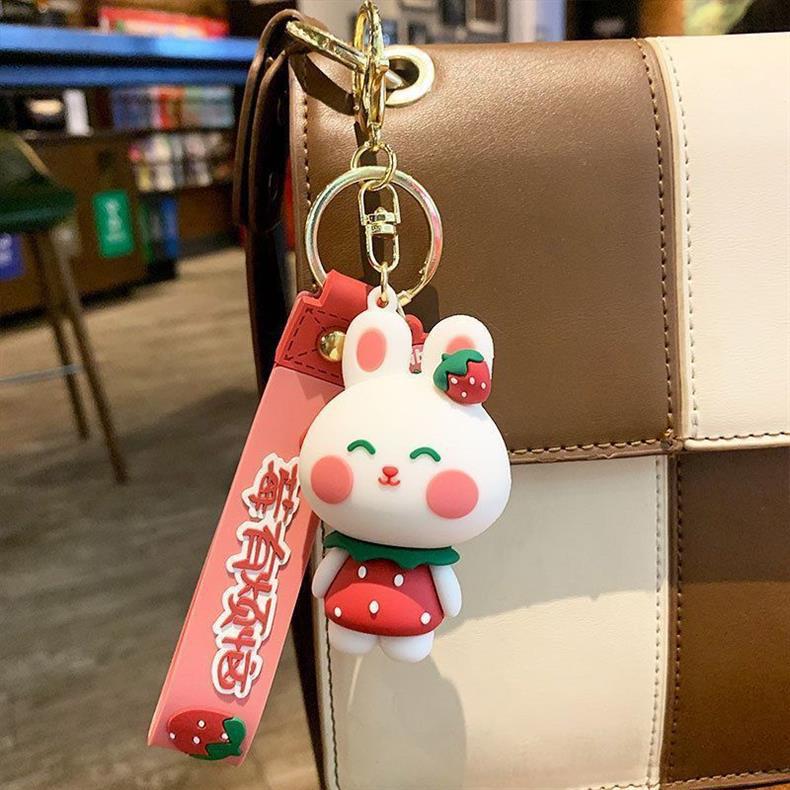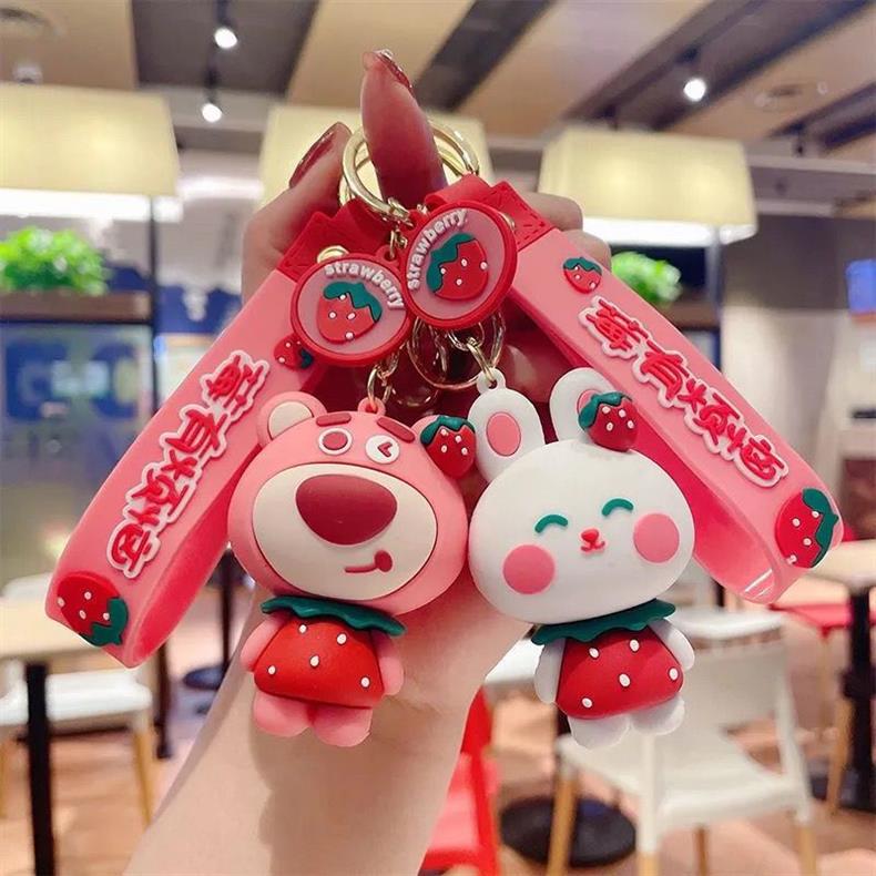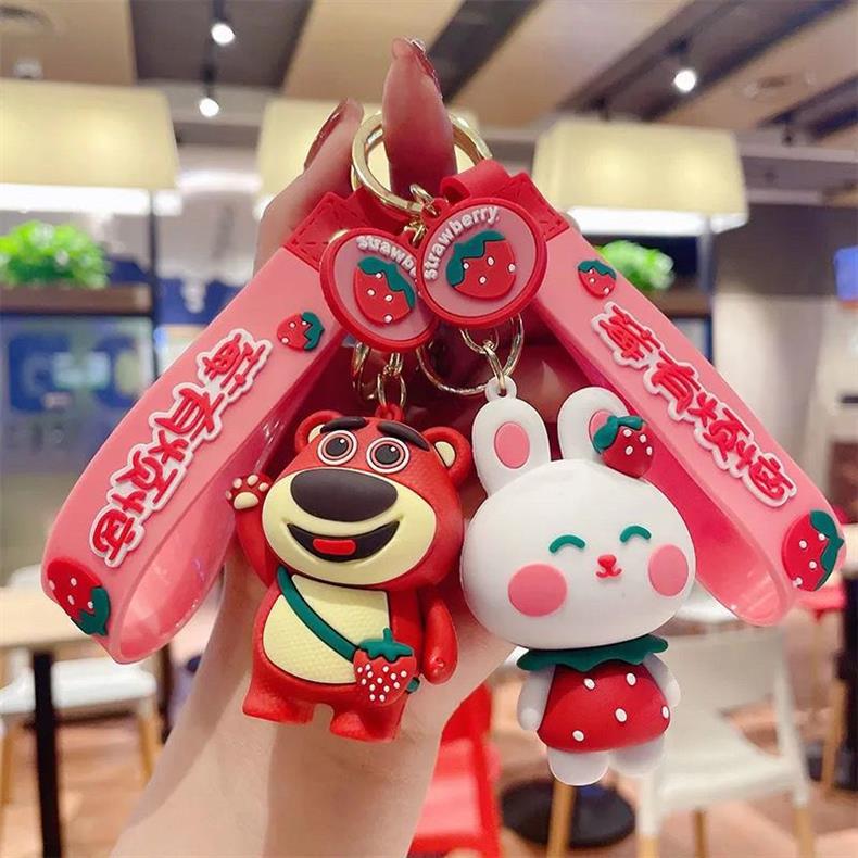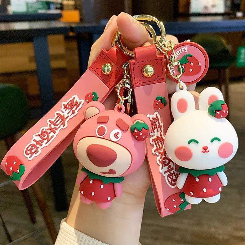 ネットの赤いかわいいアニメのイチゴの熊のキーホルダーのウサギは自動車のキーチェーンの学生のかばんの小さいプレゼントの卸売りを飾ります。