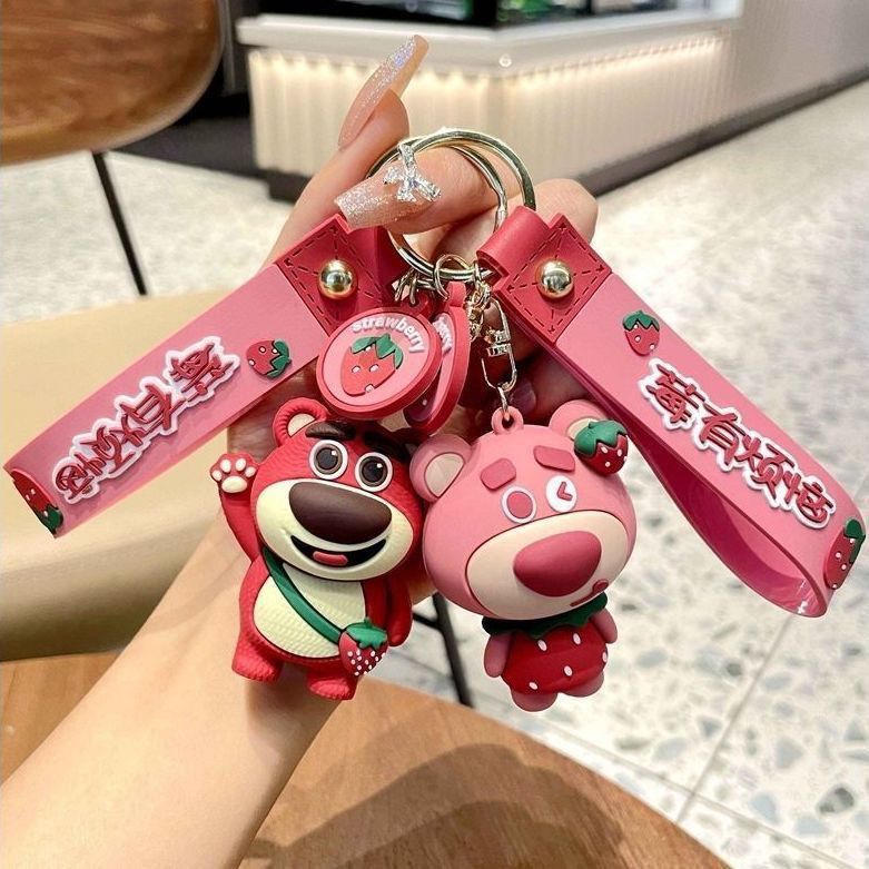ネット赤いちご熊のキーホルダーカップルのペアアニメ熊のバッグ車の飾りのアイデアプレゼントがかわいい
