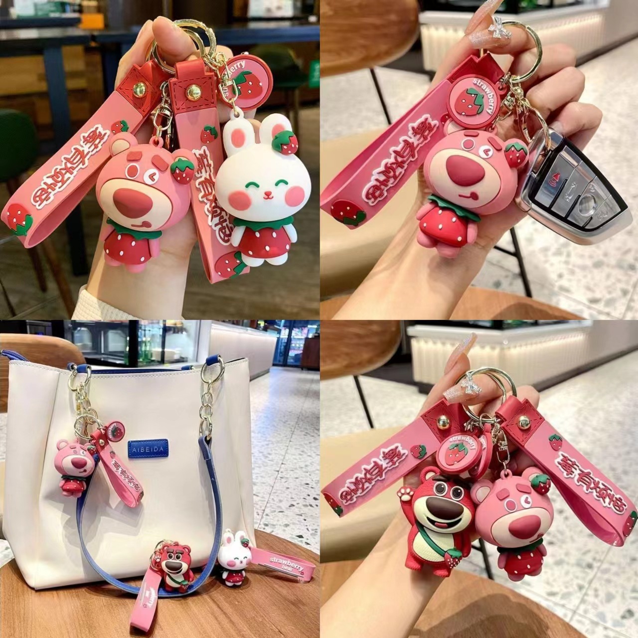 クリエイティブ漫画いちご熊キーホルダーストラップ自動車キーホルダーカップルバッグストラップイベントプレゼント卸売り