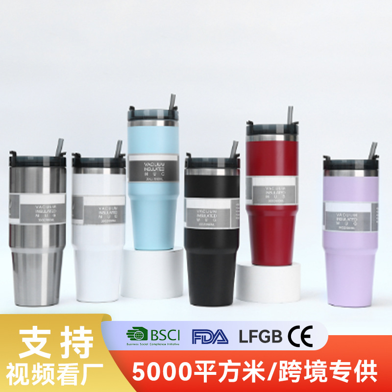 日本式ストローカップ携帯式コップ304ステンレス保温カップ大容量運動ストローカップ