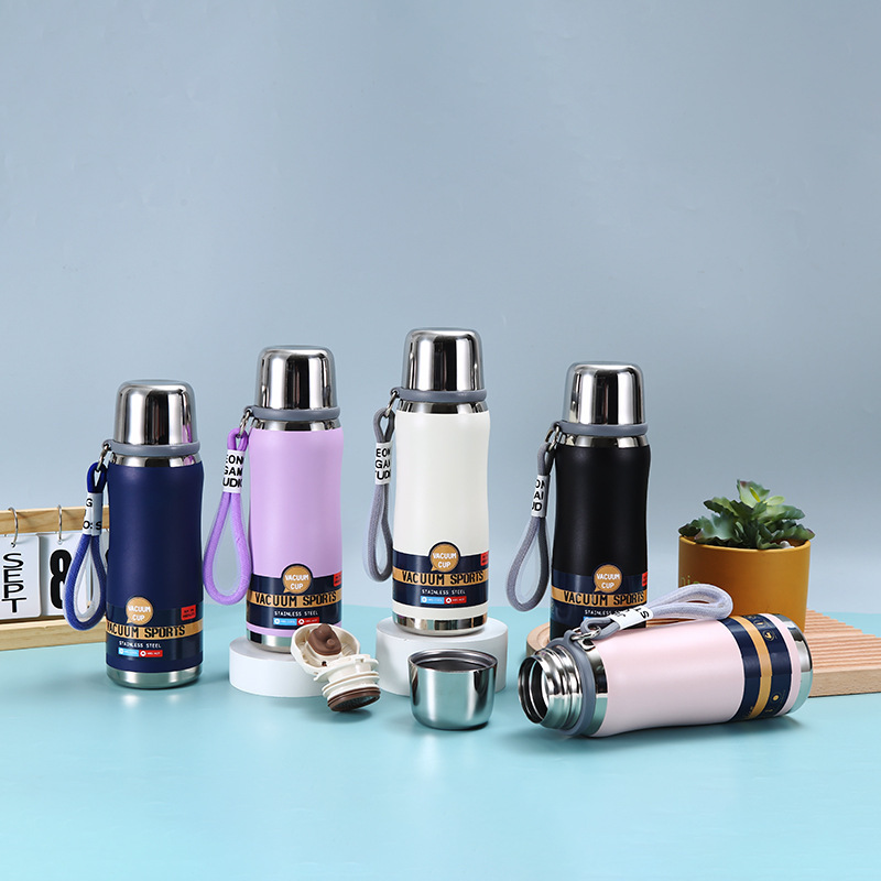 新款子弹头316不锈钢保温杯大容量带提绳登山壶户外便携骑行壶