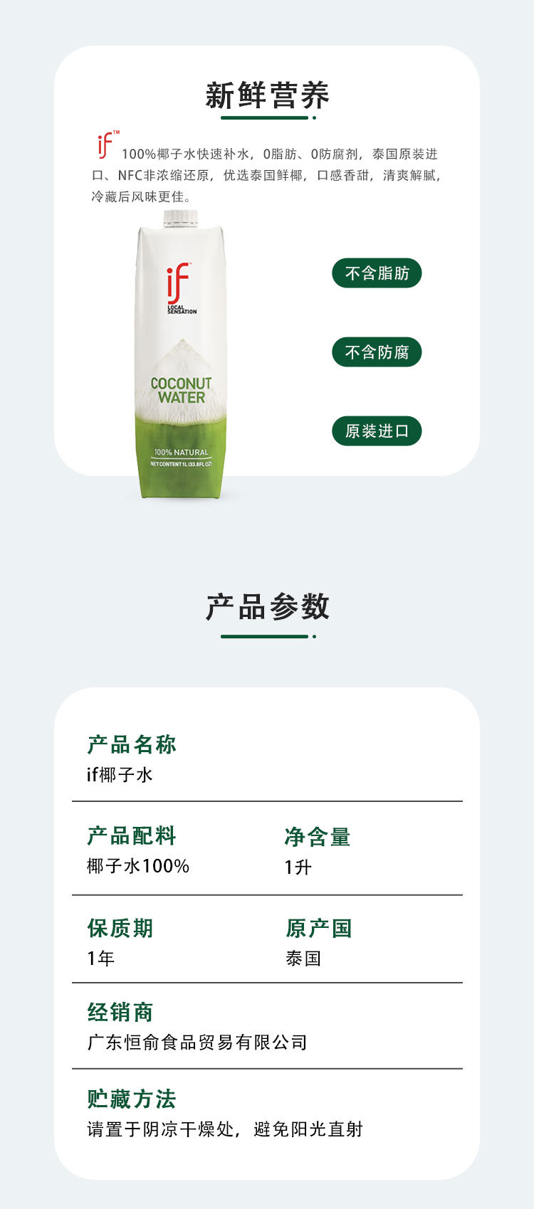 タイ輸入ifココナッツジュース箱入りNFC電解質ココナッツ水妊婦飲料1L/330ml新鮮ココナッツジュース