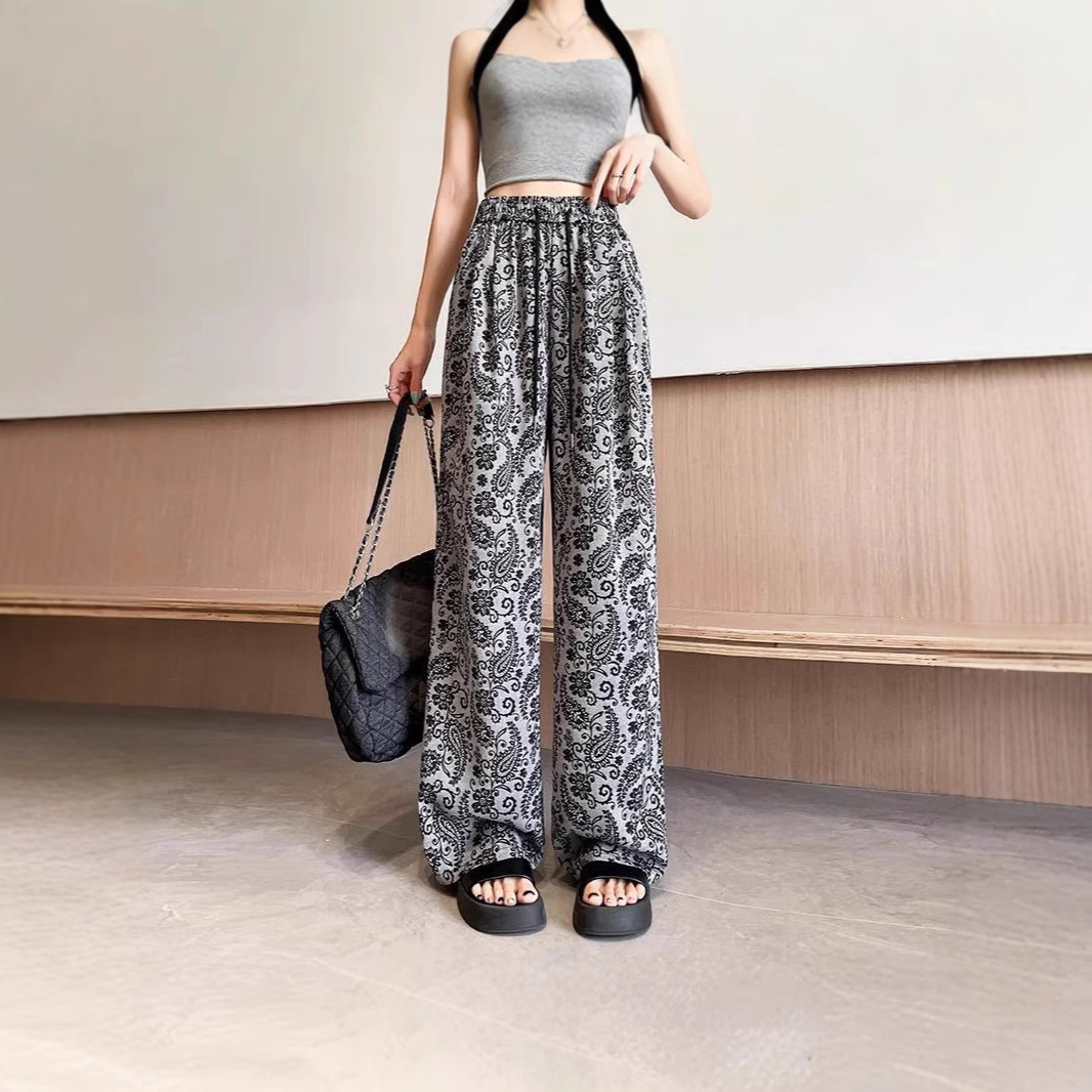 外国貿易クロスボーダータイ象ワイドレッグパンツ女性の夏薄いハイウエストストレートルーズカジュアルパンツフロアモップパンツ