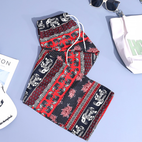 東南アジア風 クロスボーダー エレファントパンツ レディース 夏 薄手 ハイウエスト エスニック風 ストレート ゆったり ビーチパンツ 脚長効果