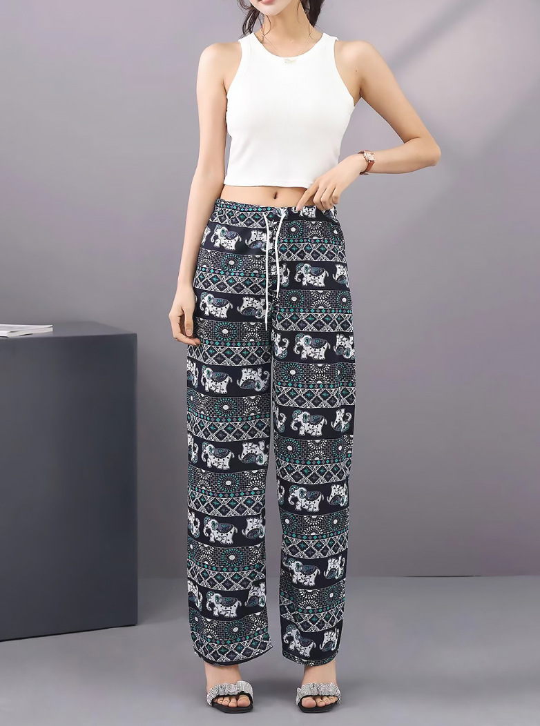 2025夏季东南亚爆款春夏名族风高腰显瘦大象裤女直筒裤宽松阔腿裤
