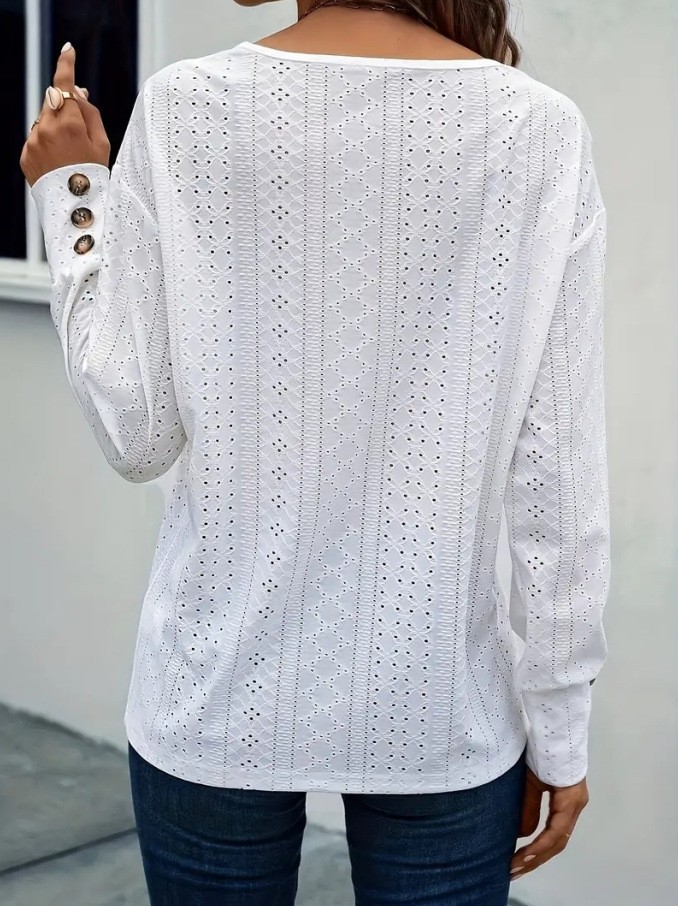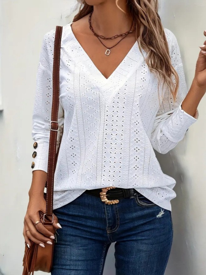 2024国境を越えた新しい爆発金欧米国境を越えた女装アマゾン独立駅ファッション透かし彫りvネック落肩長袖tシャツ