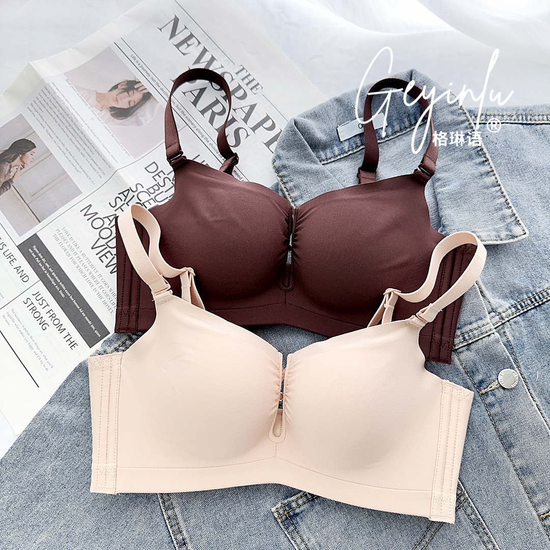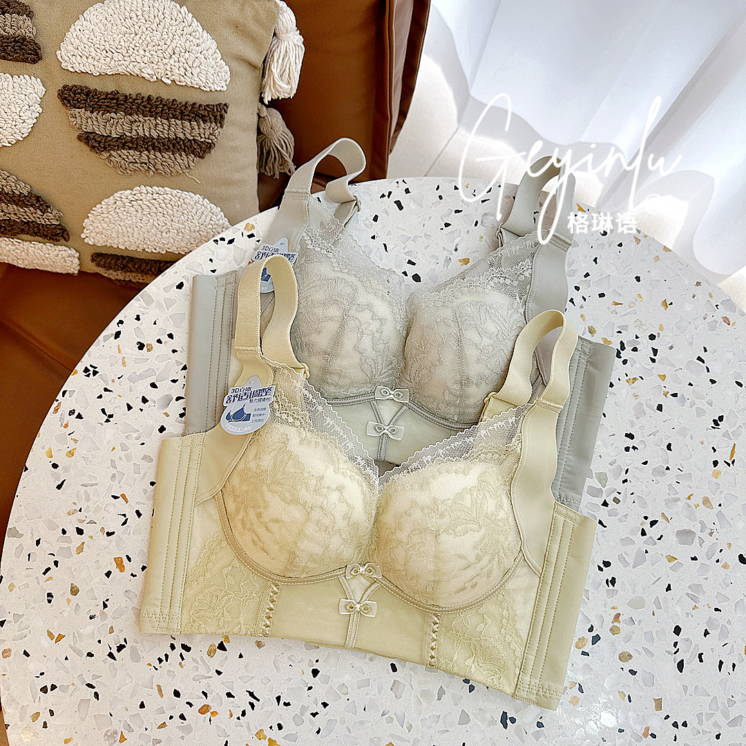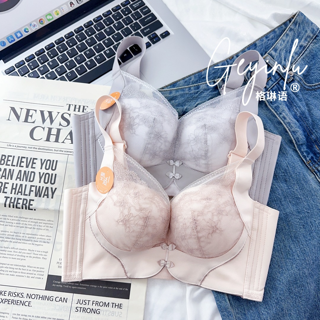 格琳语 轻奢国潮蕾丝中厚款无钢圈聚拢侧收调整型内衣文胸跨境