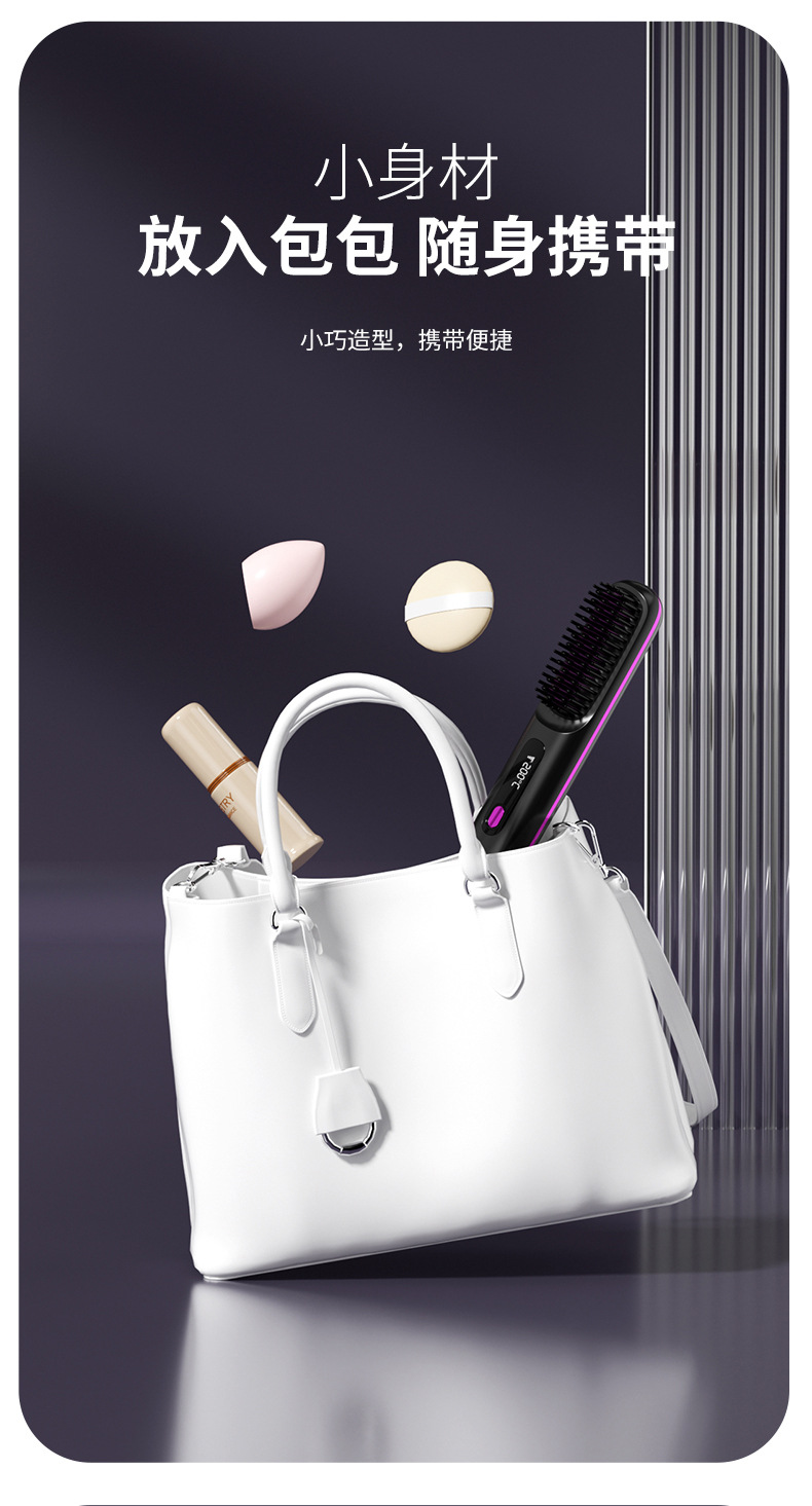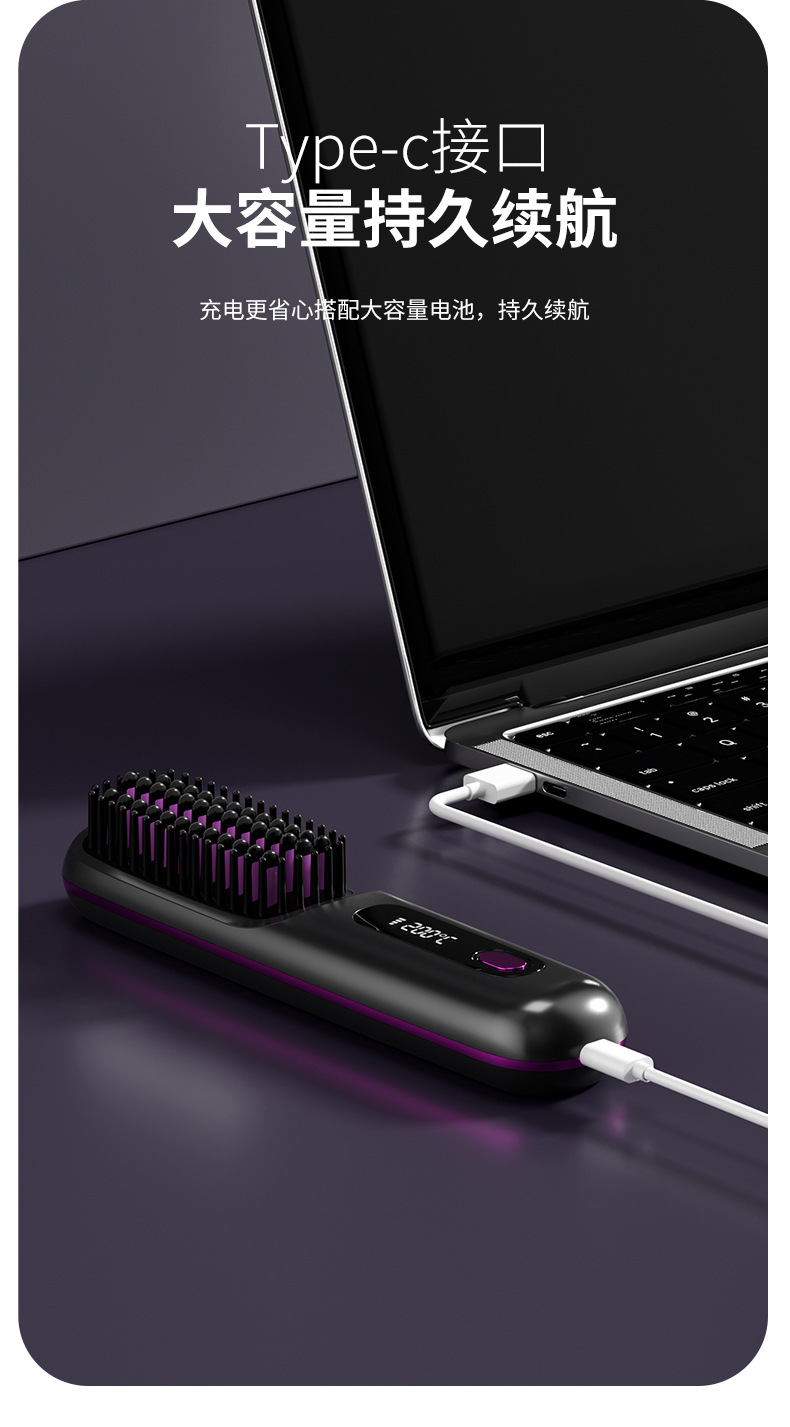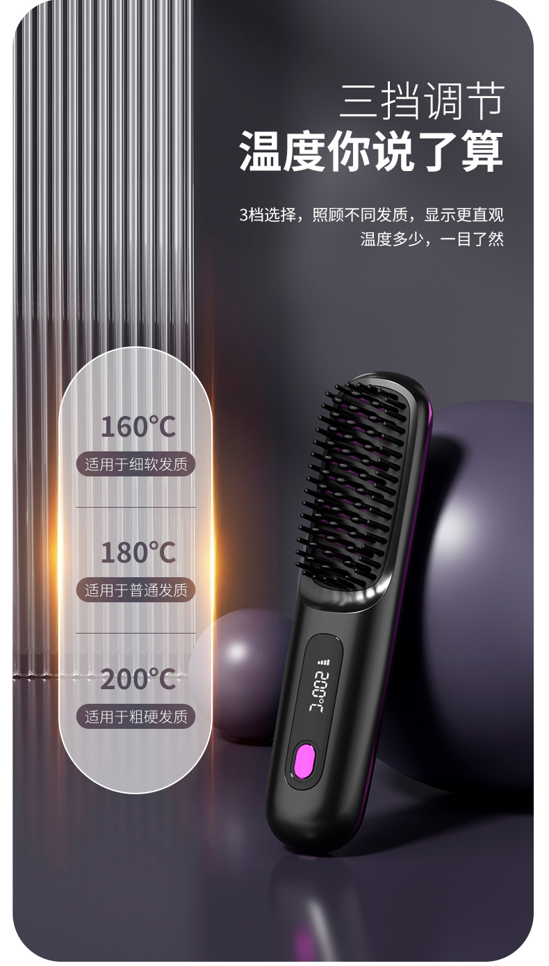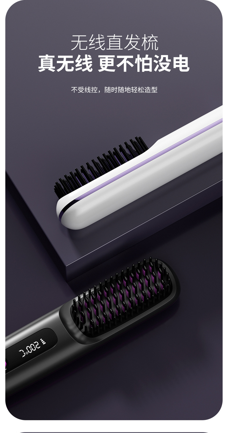 クロスボーダー専用の新型液晶USB充電セラミック加熱電気櫛ストレート器無線携帯型ストレート櫛