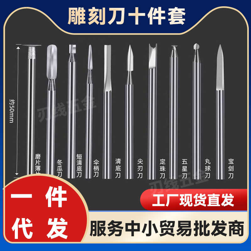 彫刻電動工具セット歯機彫刻刃白鋼ドリル核彫刻木彫り大工線宝剣刀卸売り