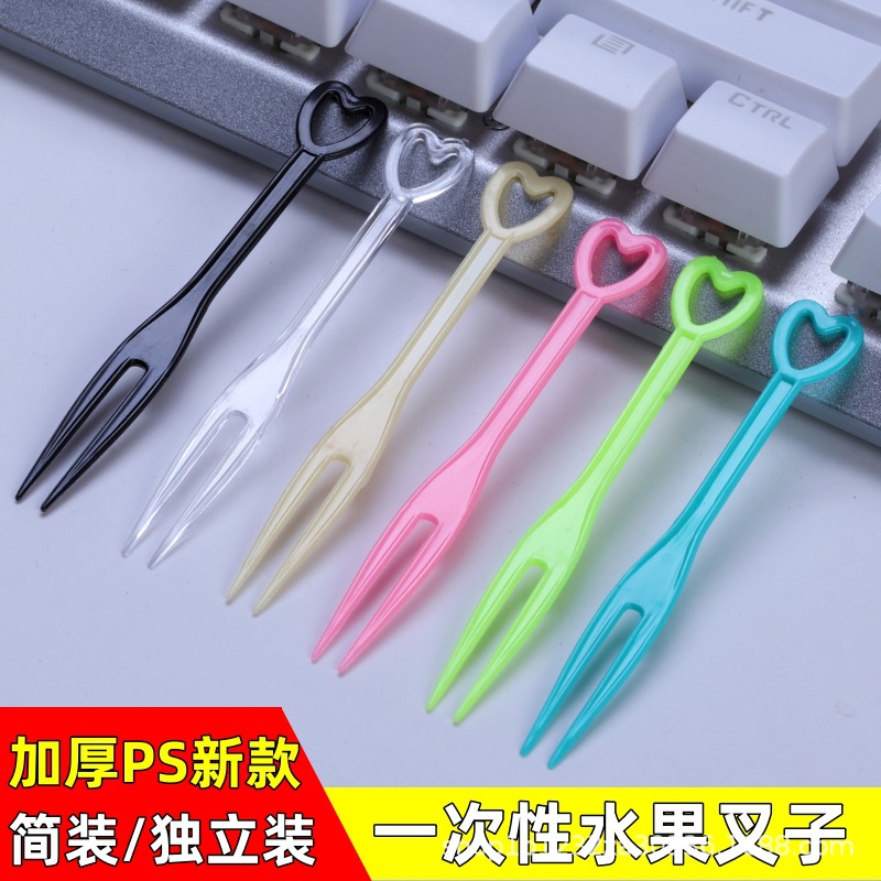 使い捨て果物フォーク果物サイン商用透明カラーかわいい厚い商用独立包装KTVバー