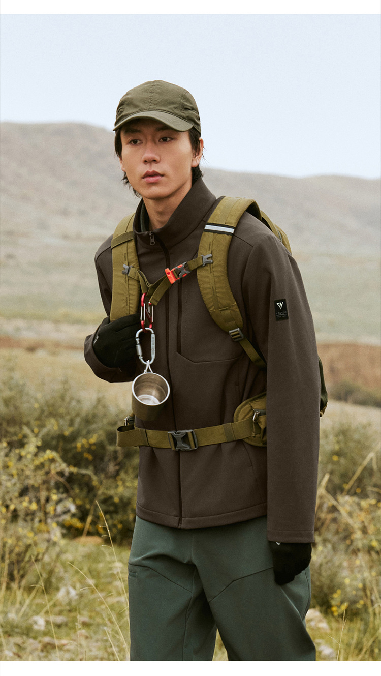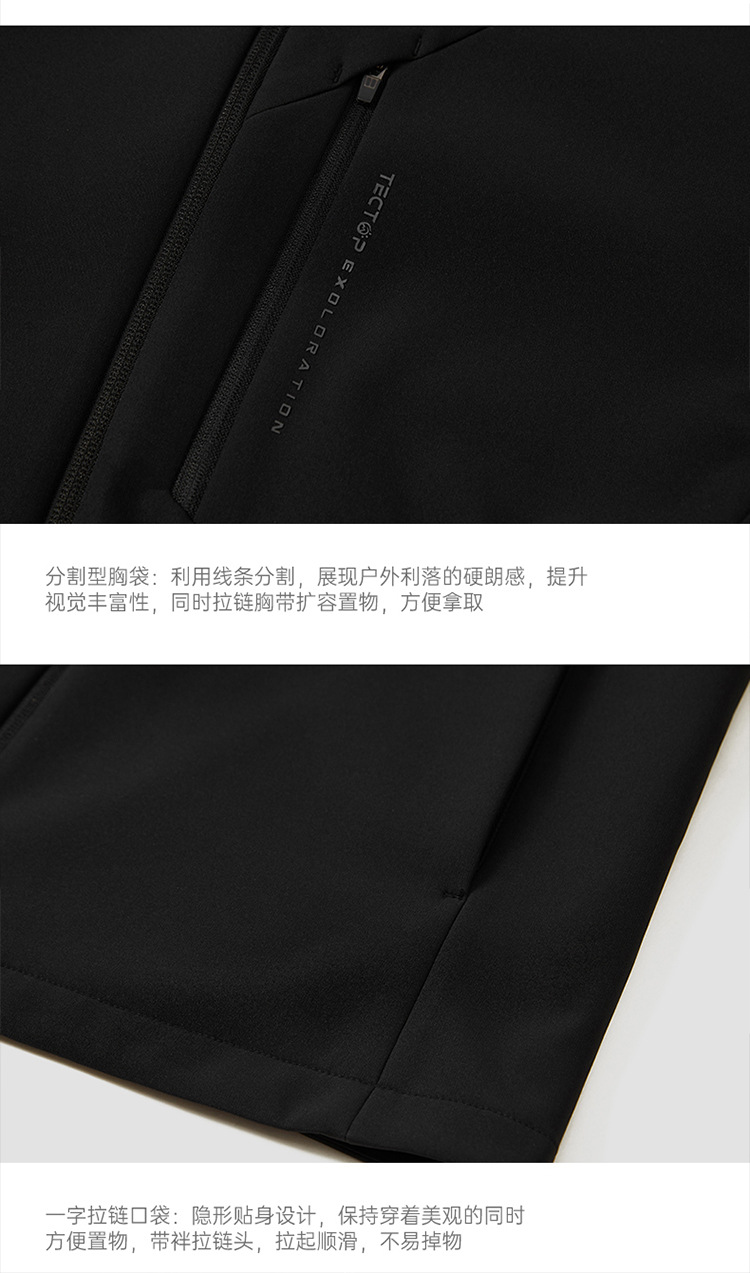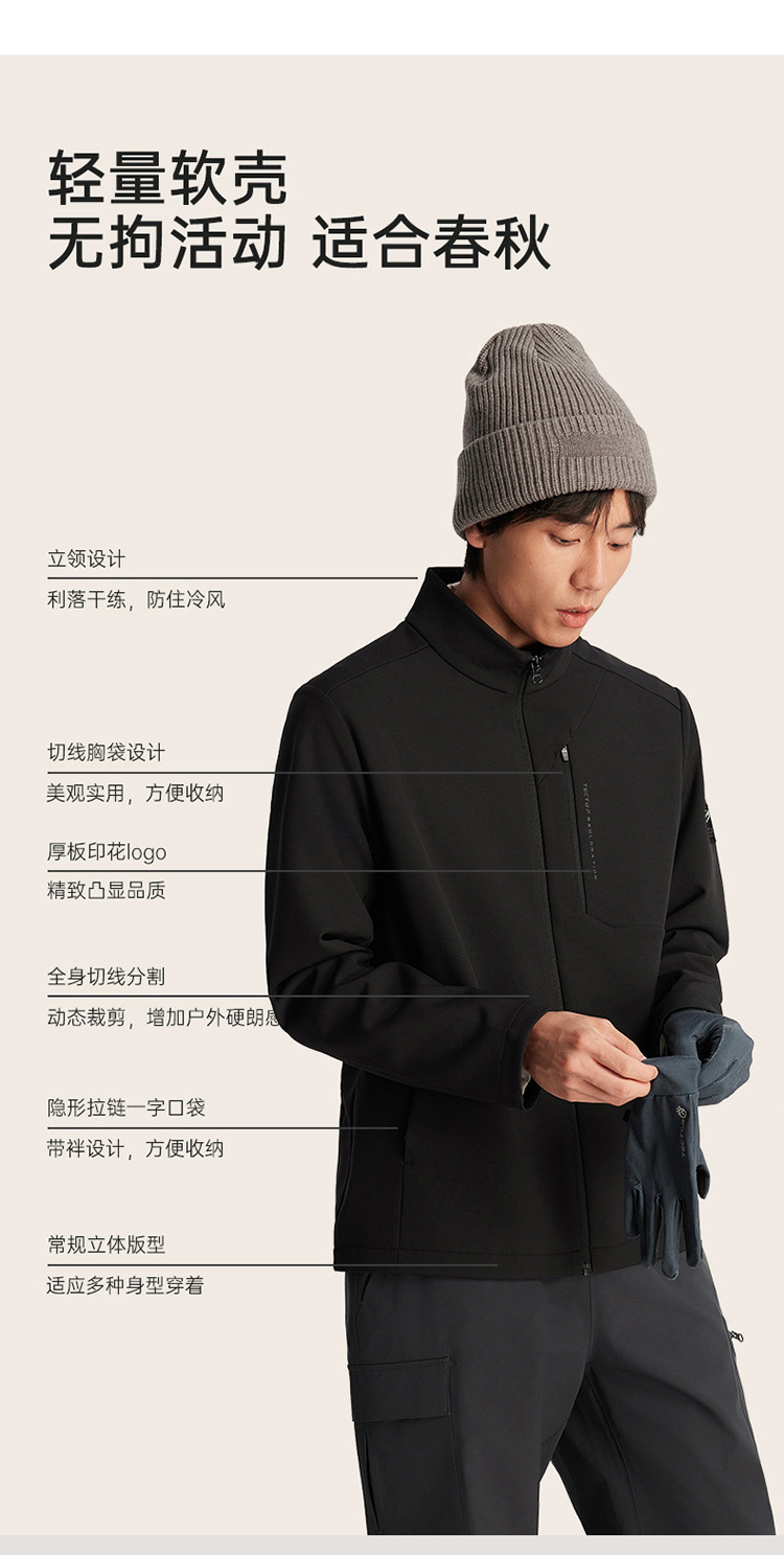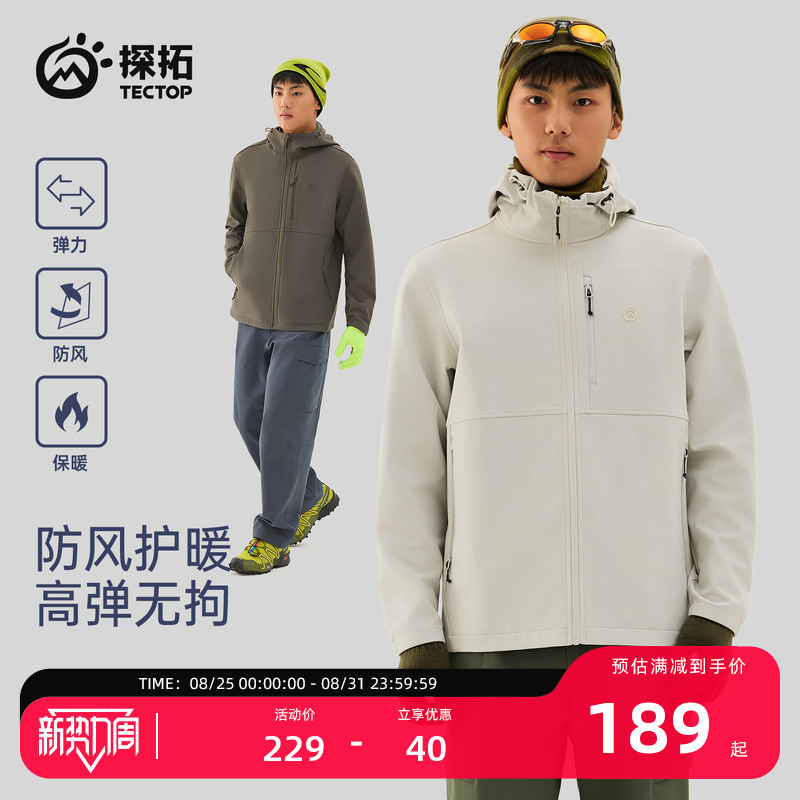 25秋冬探拓户外软壳衣男士加绒防风防泼水单层冲锋衣登山连帽外套