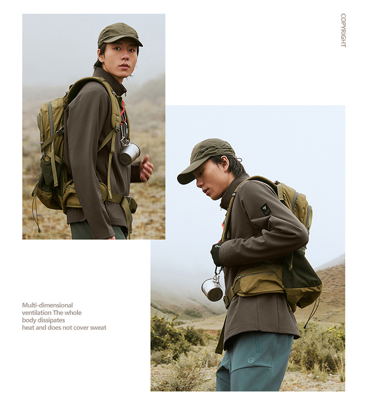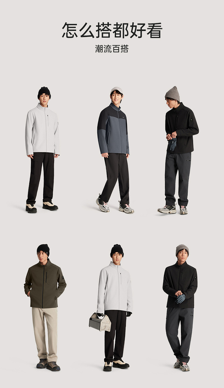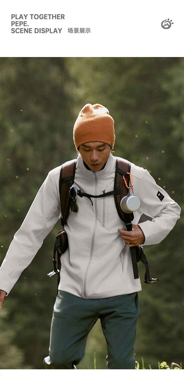 25秋冬探拓户外软壳衣男士加绒防风防泼水单层冲锋衣登山连帽外套
