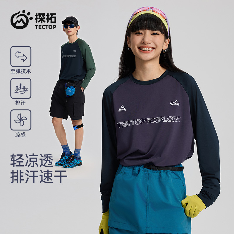 2025 春夏新作探拓アウトドアスポーツ速乾長袖 Tシャツ男性と女性のためのハーフジップスタンドカラー速乾性服男性用